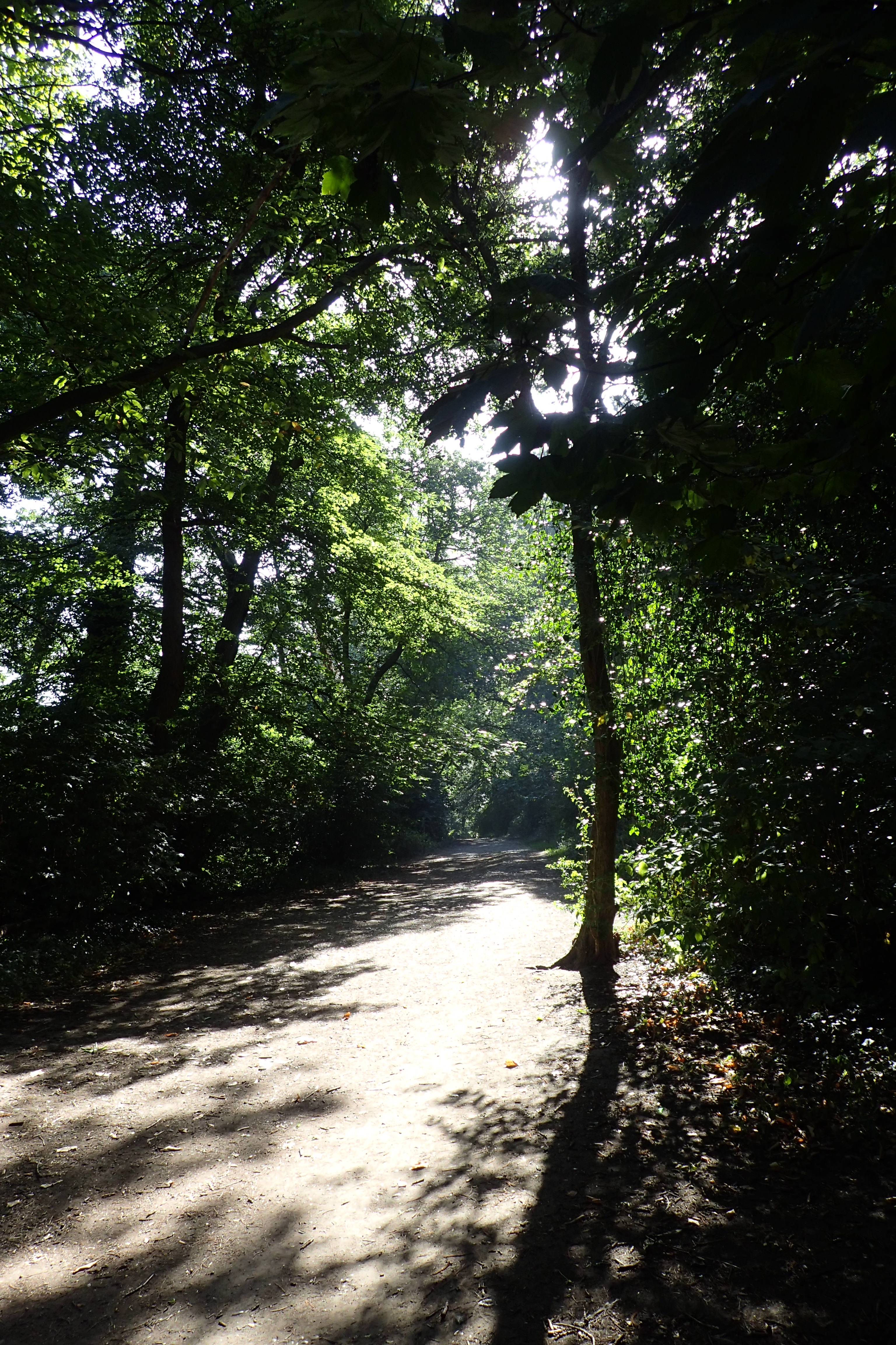 In an attempt to escape a little of the days heat I caught an early train and arrived at Welling station, where I finished the previous section, soon after seven. There was just a little wandering the back streets of a smart estate before entering Bostall Woods with its gentle shaded paths. There was almost no-one around, just the odd runner, though they probably though I was an odd walker…