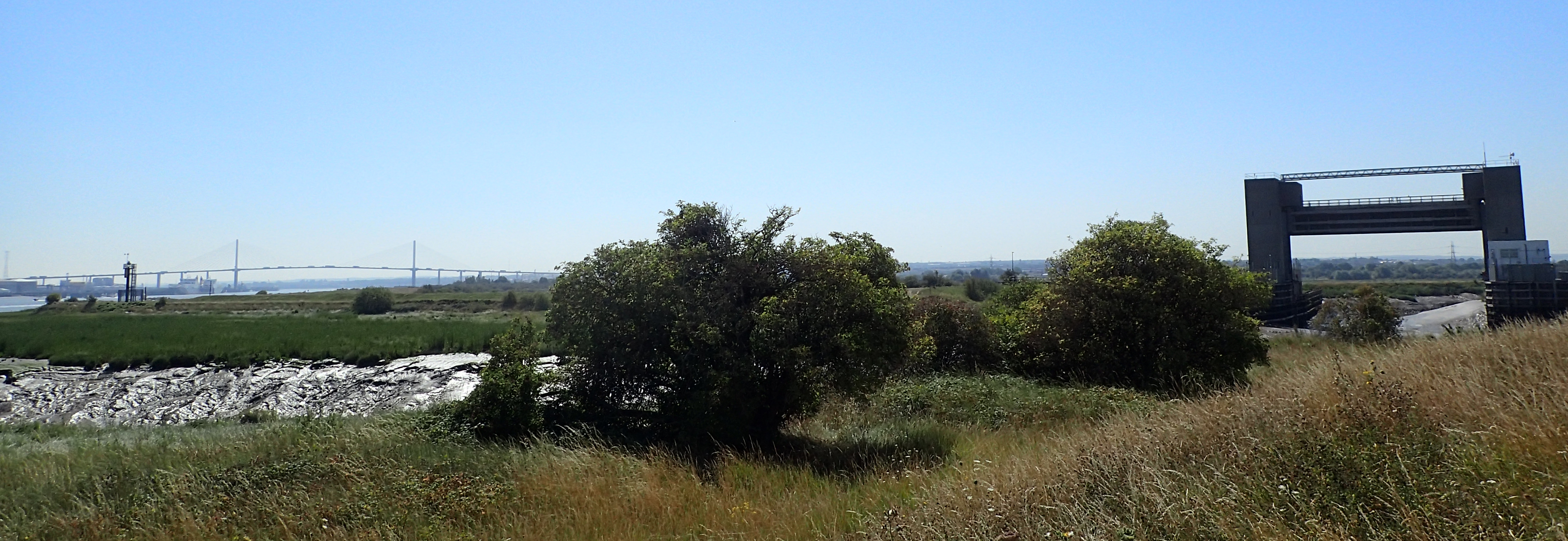 I walked past the Dartford Barrier, built in 1981. It forms part of the flood defence system for Greater London and has been crucial in protecting Dartford and Crayford from flooding. The raised gates weigh 160 tonnes each and can be lowered even if the power goes. Well, I found it impressive….