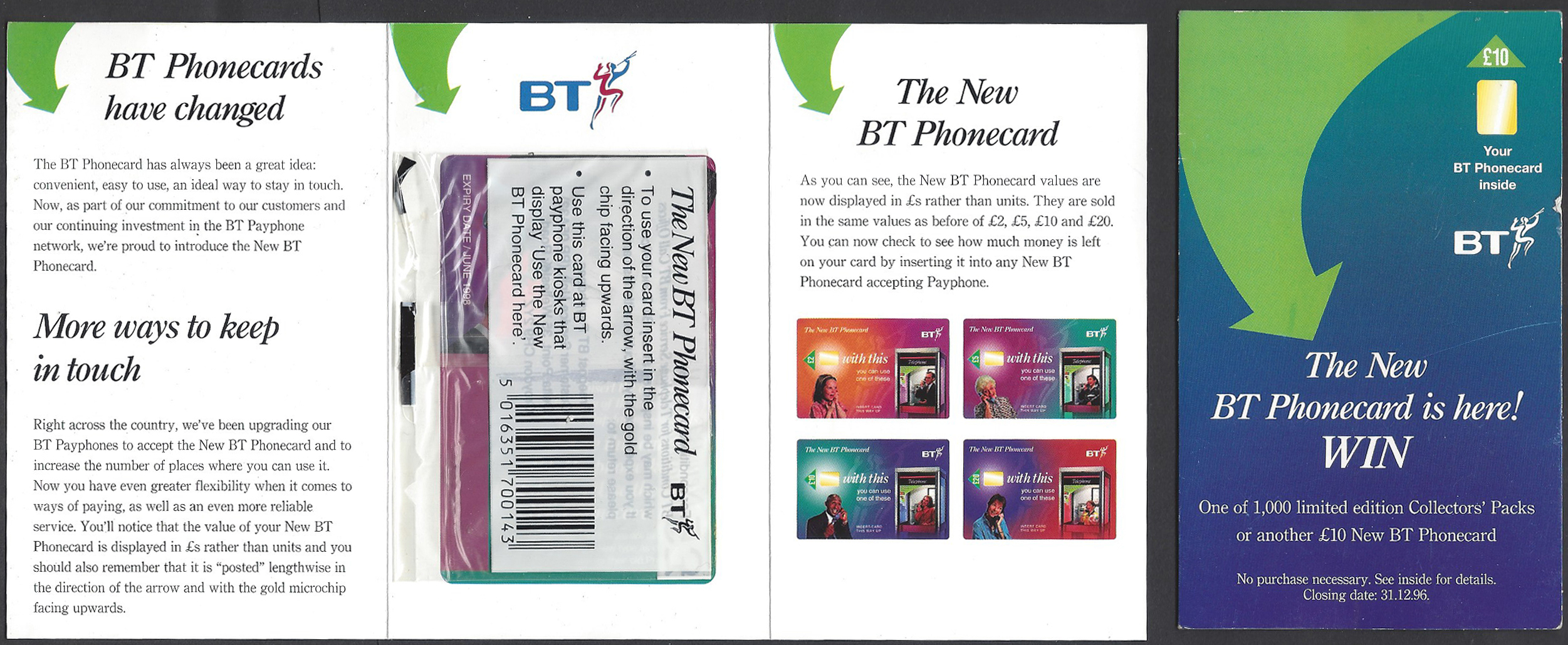 ‘New’ chip cards were introduced by BT in 1996. First issues of these came in an explanatory leaflet
