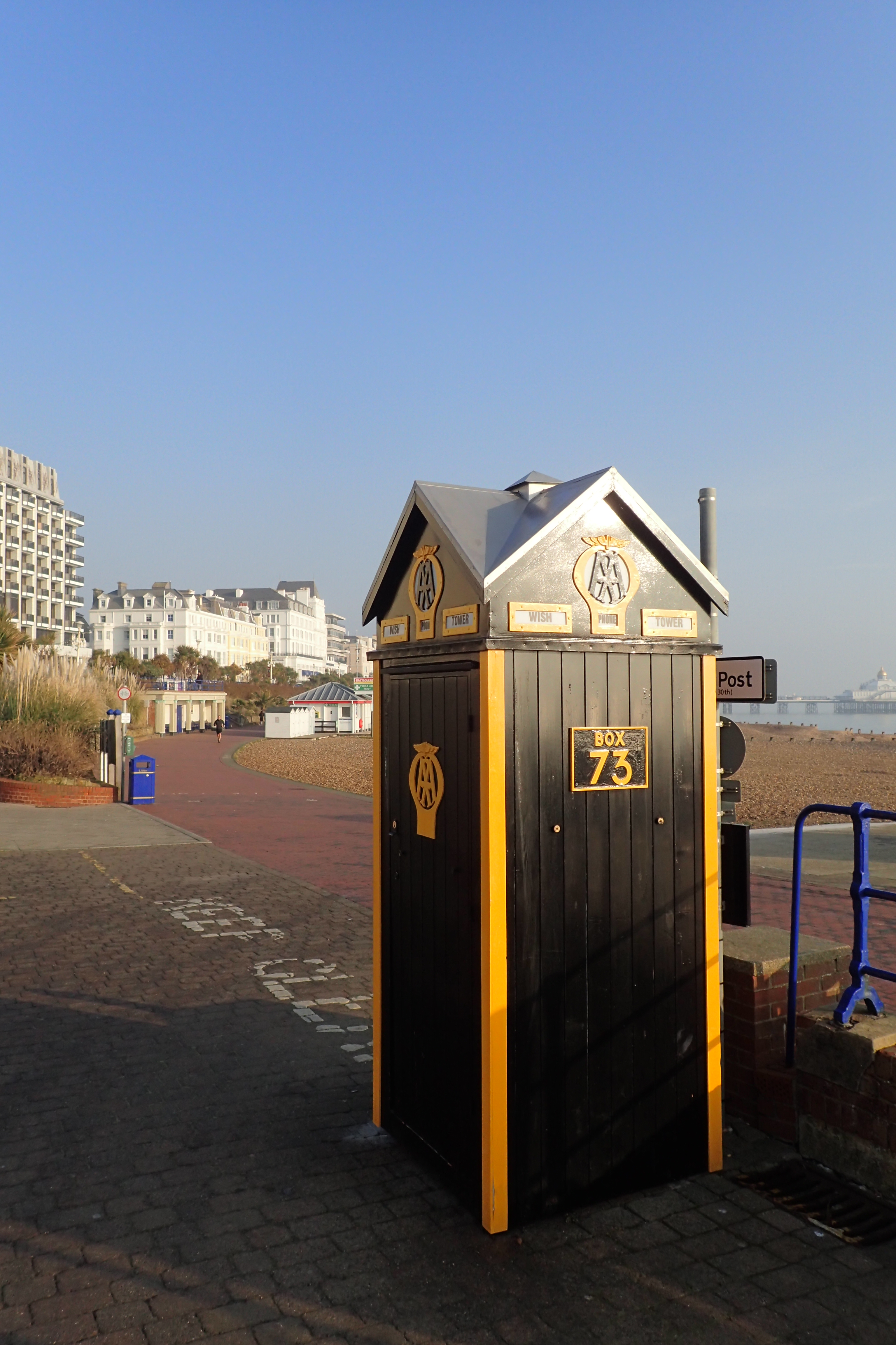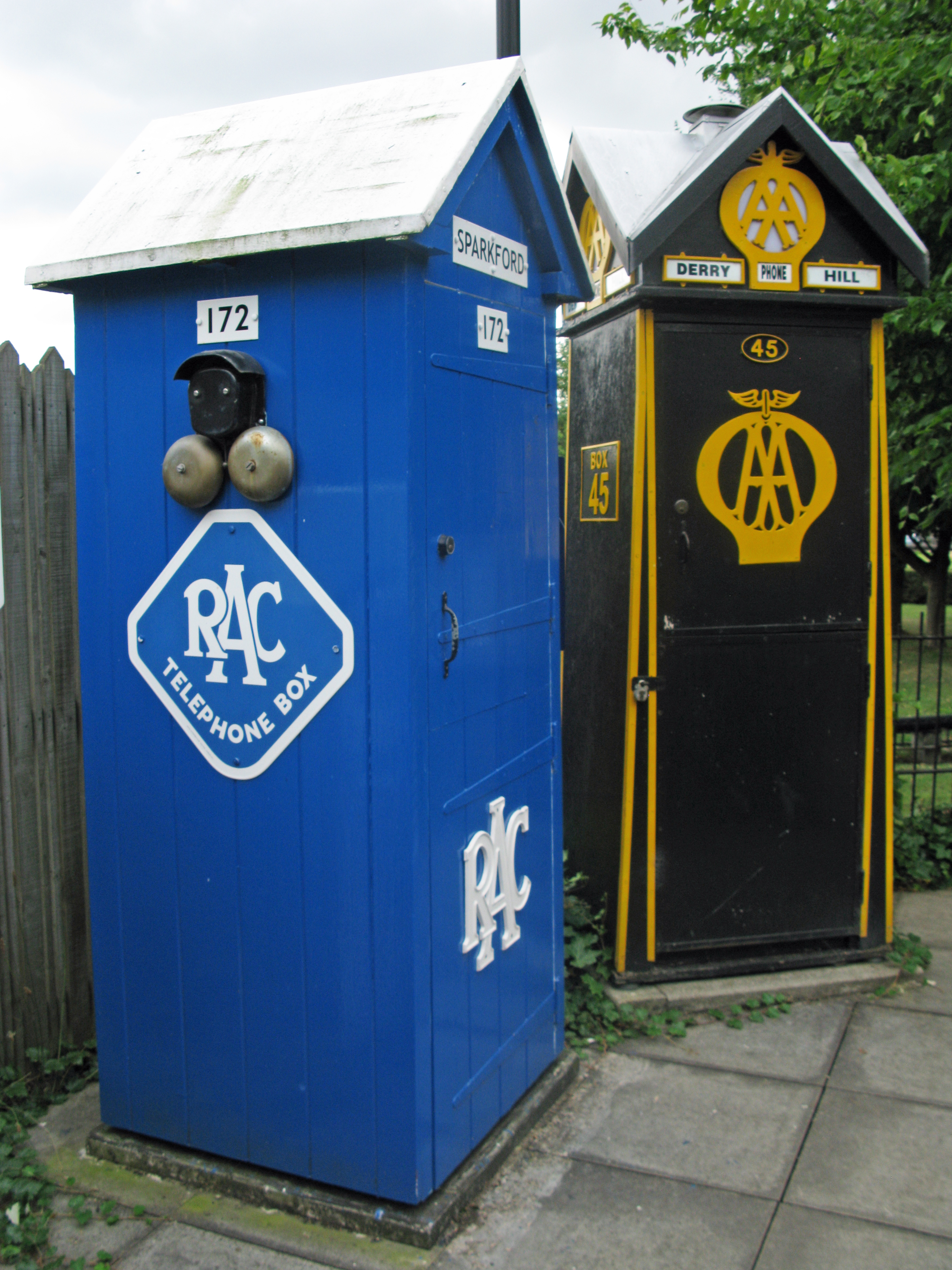 Both the Automobile Association (AA) and the Royal Automobile Club (RAC) had a network of phone kiosks for their staff and the public to use. The AA began installing kiosks in 1912, the RAC in 1919. Members had a key to access the interior so that they could phone for assistance. There is quite a wide variety of designs and pedestal boxes were also used. Some examples still survive of each, by far the majority are AA kiosks and they may be seen while driving around the UK.