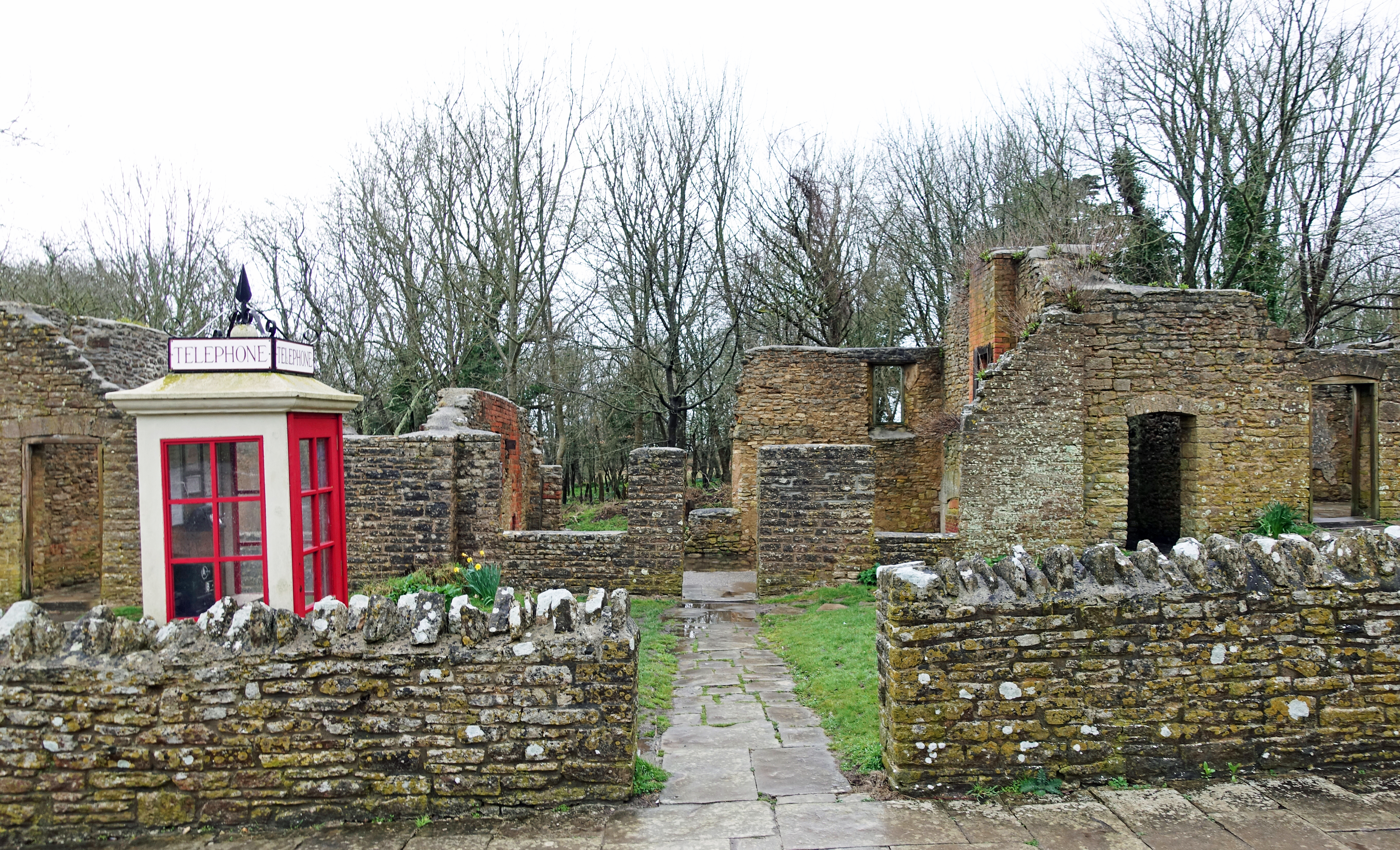 From 1929 a K1 Mk236 was situated outside the little post office in Tyneham. It has had a run of bad luck. First abandoned and subsequently consumed by vegetation after the war, it was eventually restored in the early 1980s. During filming of Comrades in 1983, the kiosk was accidentally destroyed by the film company and they were forced to source a replacement. In 2012, the K1 was completely restored and is now authentic.