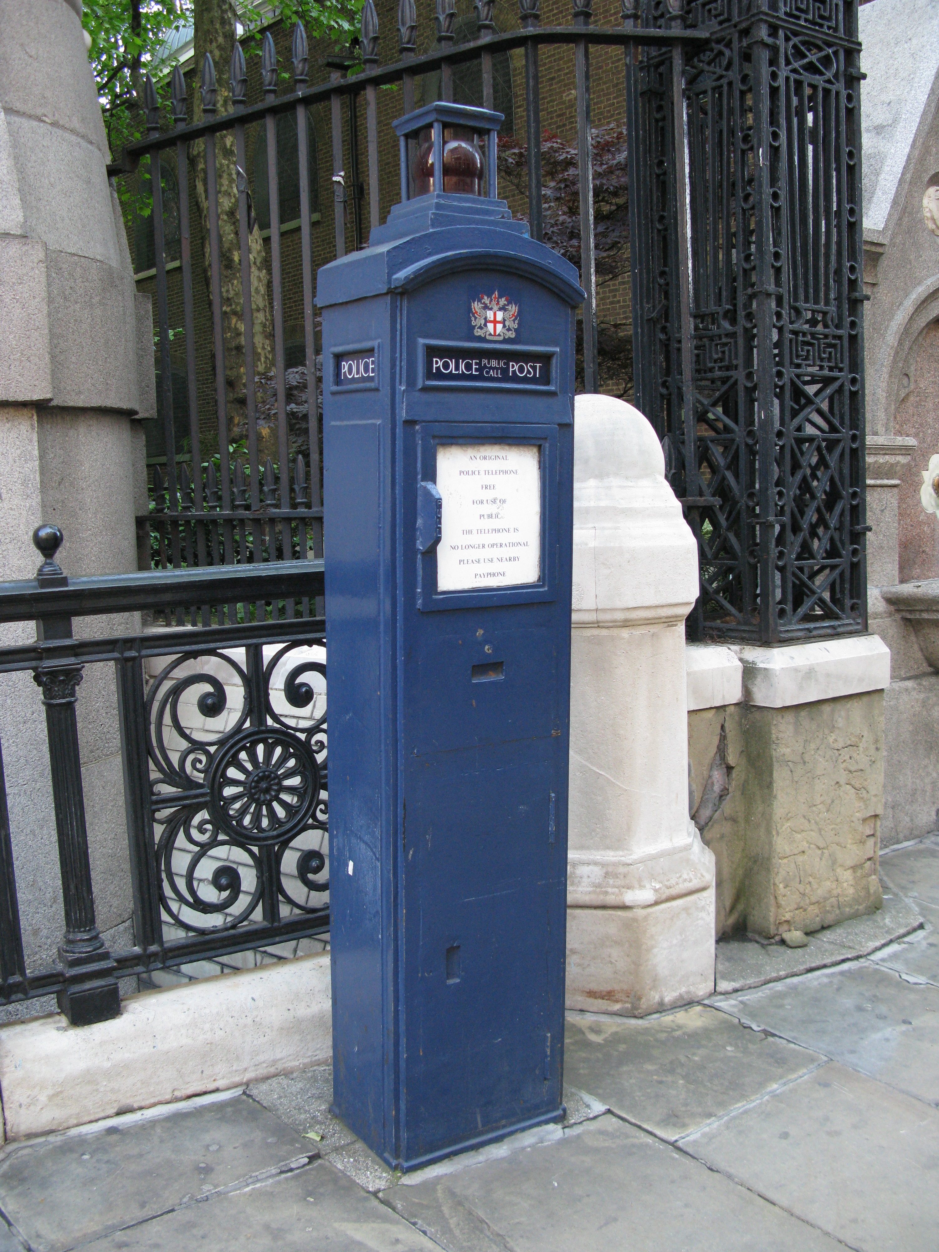 The various Police kiosks and posts utilised across the country have a long and fairly involved history. Prior to mobile phones there was a need for officers to contact their station and for a station to contact an officer. Hence the introduction of these kiosks and stand alone call points. Their heyday was from the 1920s to the 1960s. With a large number of disparate Police forces across the UK, the variety of design is large and few are actually alike. They are all invariably dark blue in colour and a number survive. Some have been converted to other uses such as coffee shops, or even taken into gardens for use as garden sheds. And don’t forget Dr. Who’s Tardis!