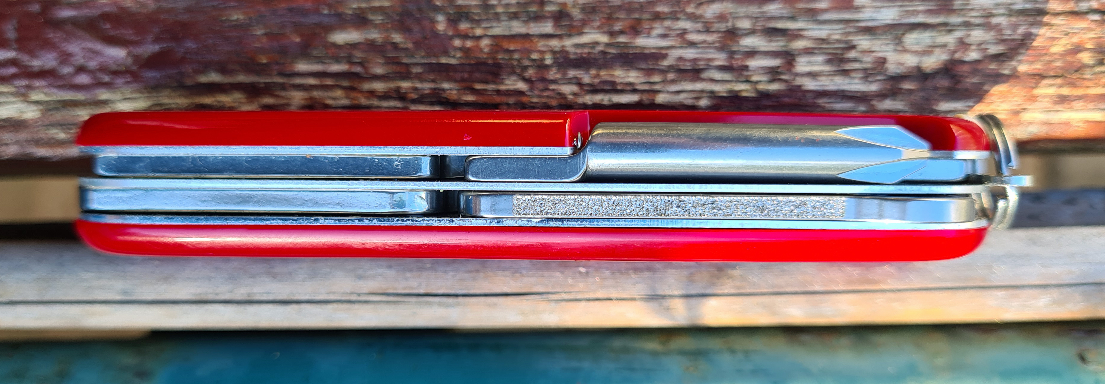 The DofE Pocket Tool was an interesting addition to the Victorinox stable of knives. It combined a really useful set of tools, of usable size, in a compact two layer package. The bluntened tip to the blade need not put off users as it makes a great spreading knife on culinary duty. The remaining tools, especially the good sized scissors, all compliment the ensemble. If you can find one for sale, snap it up.