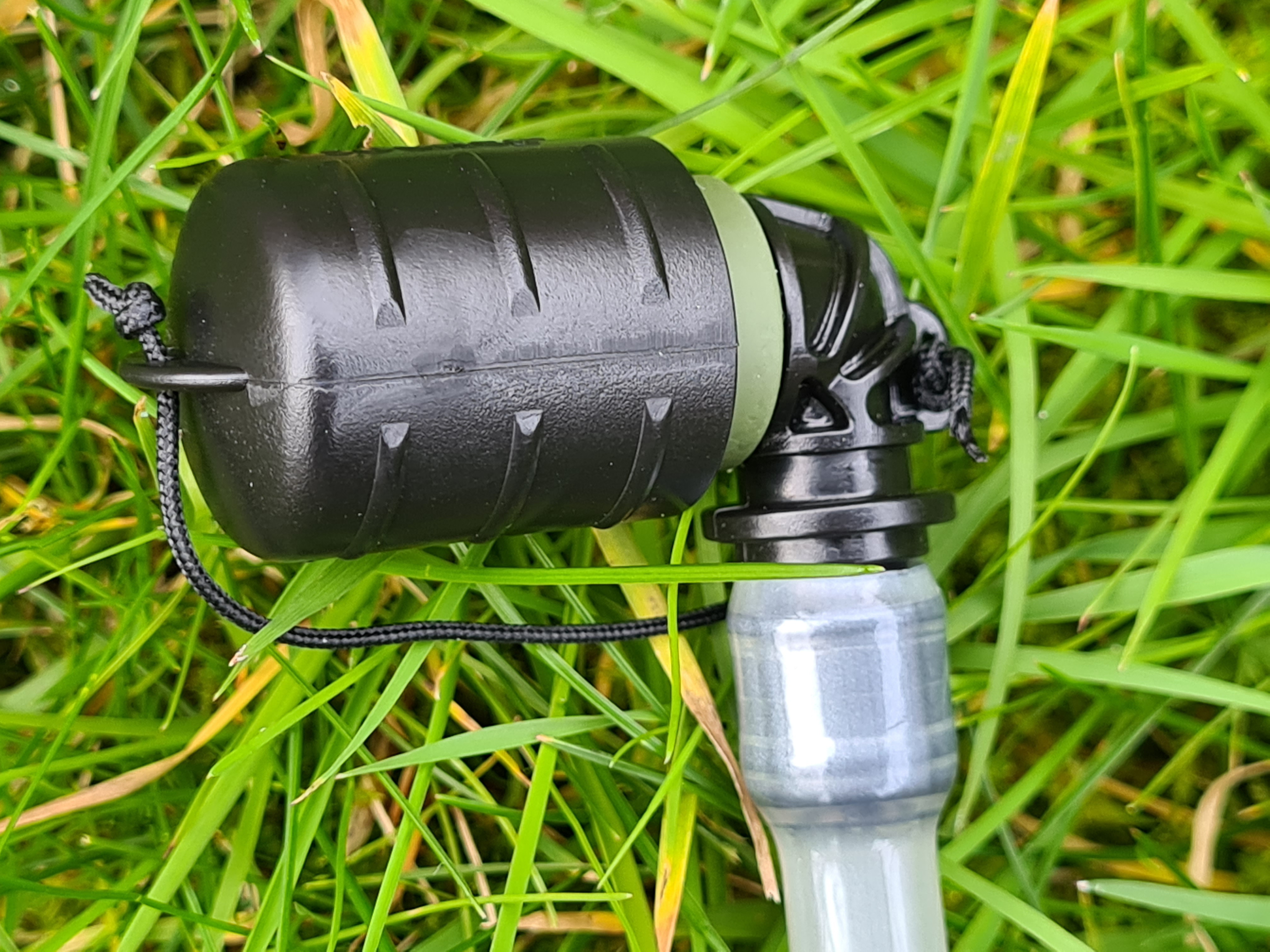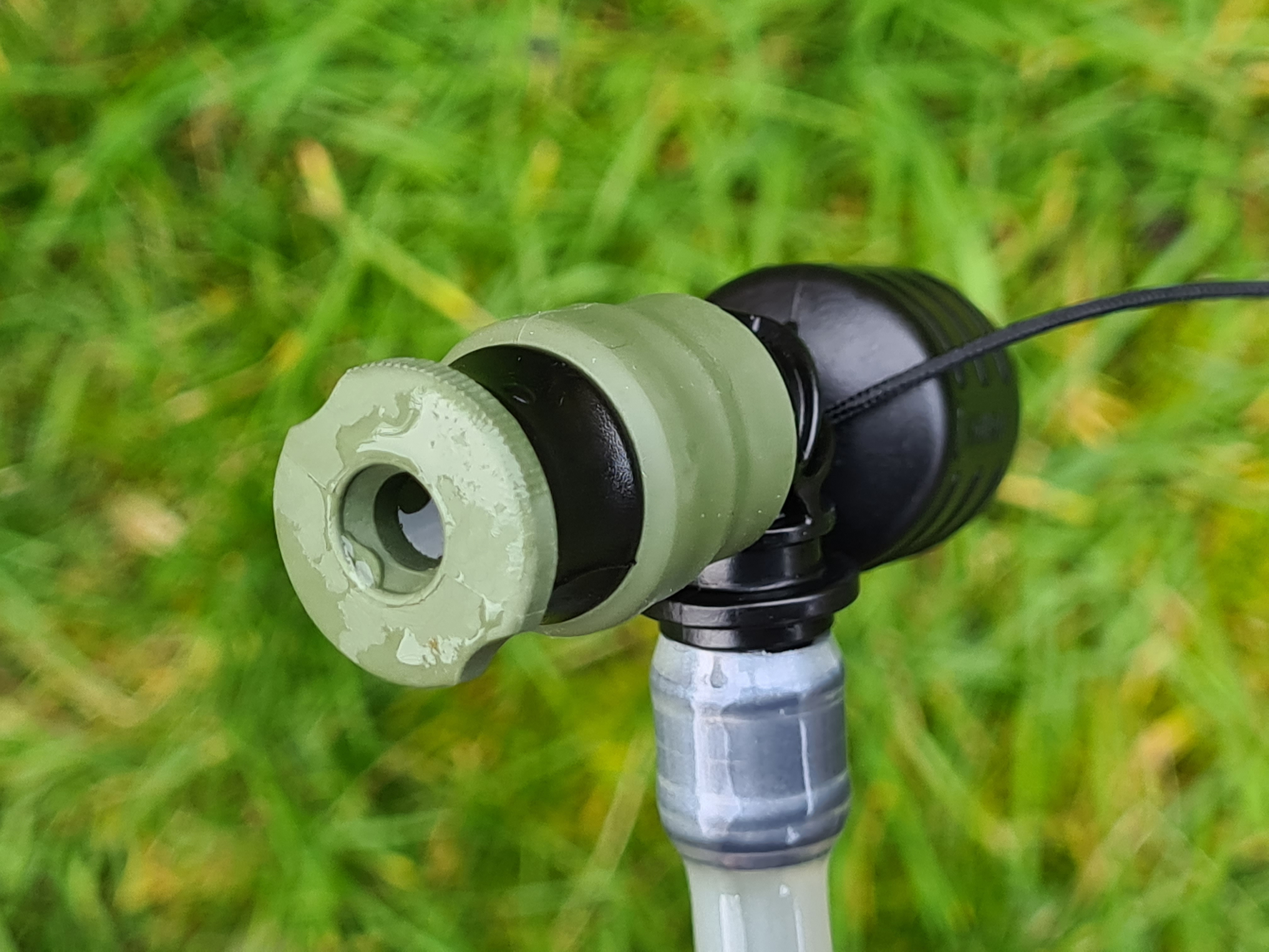 This drink nozzle can be locked by twisting (with the fingers). To just drink from, it is simple to pull open or close with just the lips. The problem with this product is that the valve’s inlet bore is larger than most hydration tubes. It is more a clip connector than intended for simply squeezing into a hydration tube. I found that by pouring boiling water on the HydraPak tube to soften it and utilising a bit of brute force, the HydraPak hydration tubing will ease over the Storm Valve stem- just!