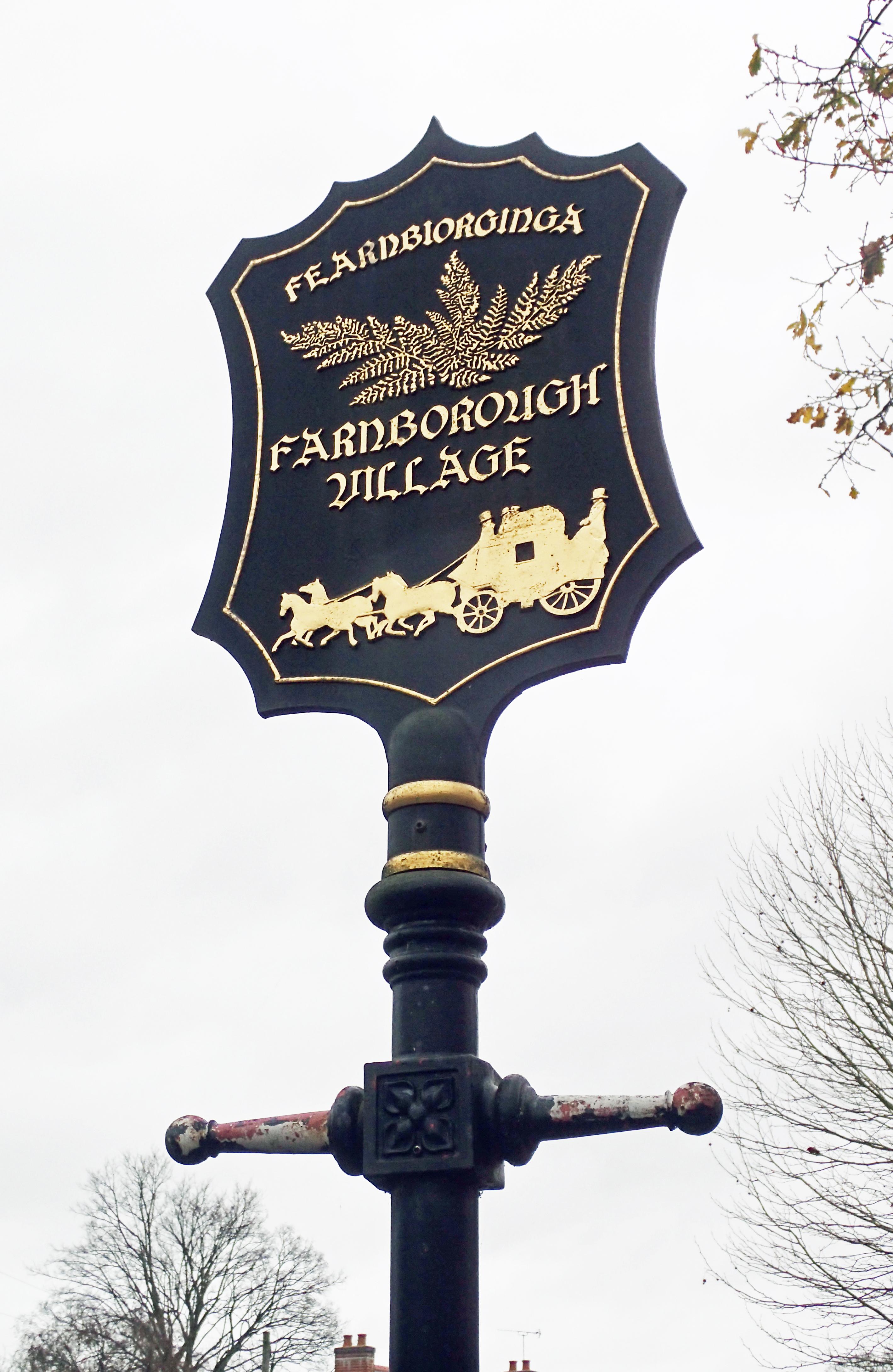 Other signs can be atop metal posts, such as the examples at Crofton and Farnborough Village included below. More elaborate village signs may stand on a pinth, or form part of an ‘artistic’ offering on a stone, concrete or brick plinth. Some villages have installed a sculpture rather than sign and these have occasionally reflected more of a commissioned artist’s vision than that of a locality or residents.
