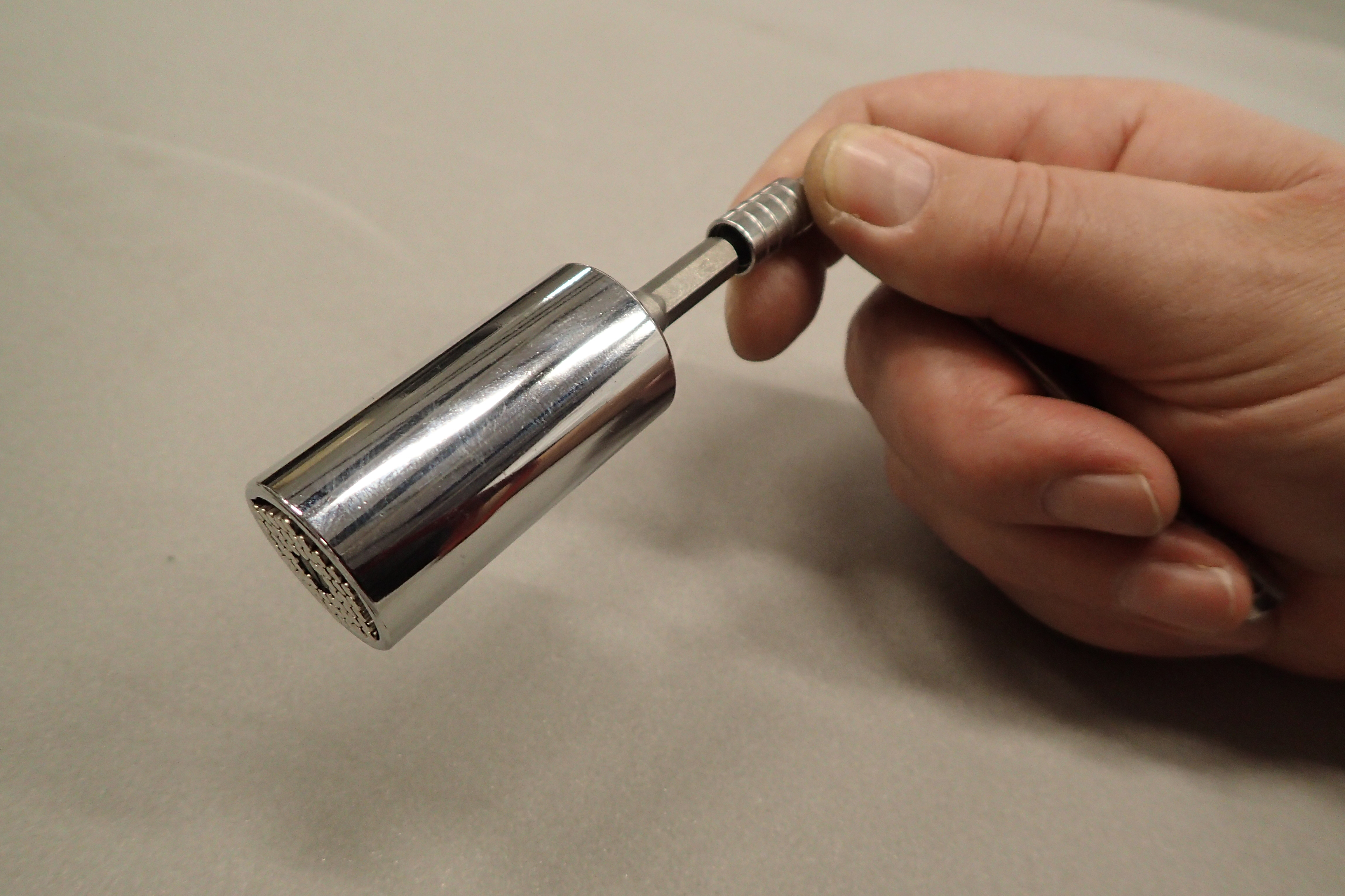 A Gator adapter will fit many shapes of head put in front of it, mine fits 7mm – 19mm sockets and various nuts, screws, hooks, bolt heads. Broken taps and knobs can frequently be successfully tackled with a gator where other tools fail. Rounded and cammed out heads can often still be loosened with a gator. However they are a weighty and not particularly small addition.