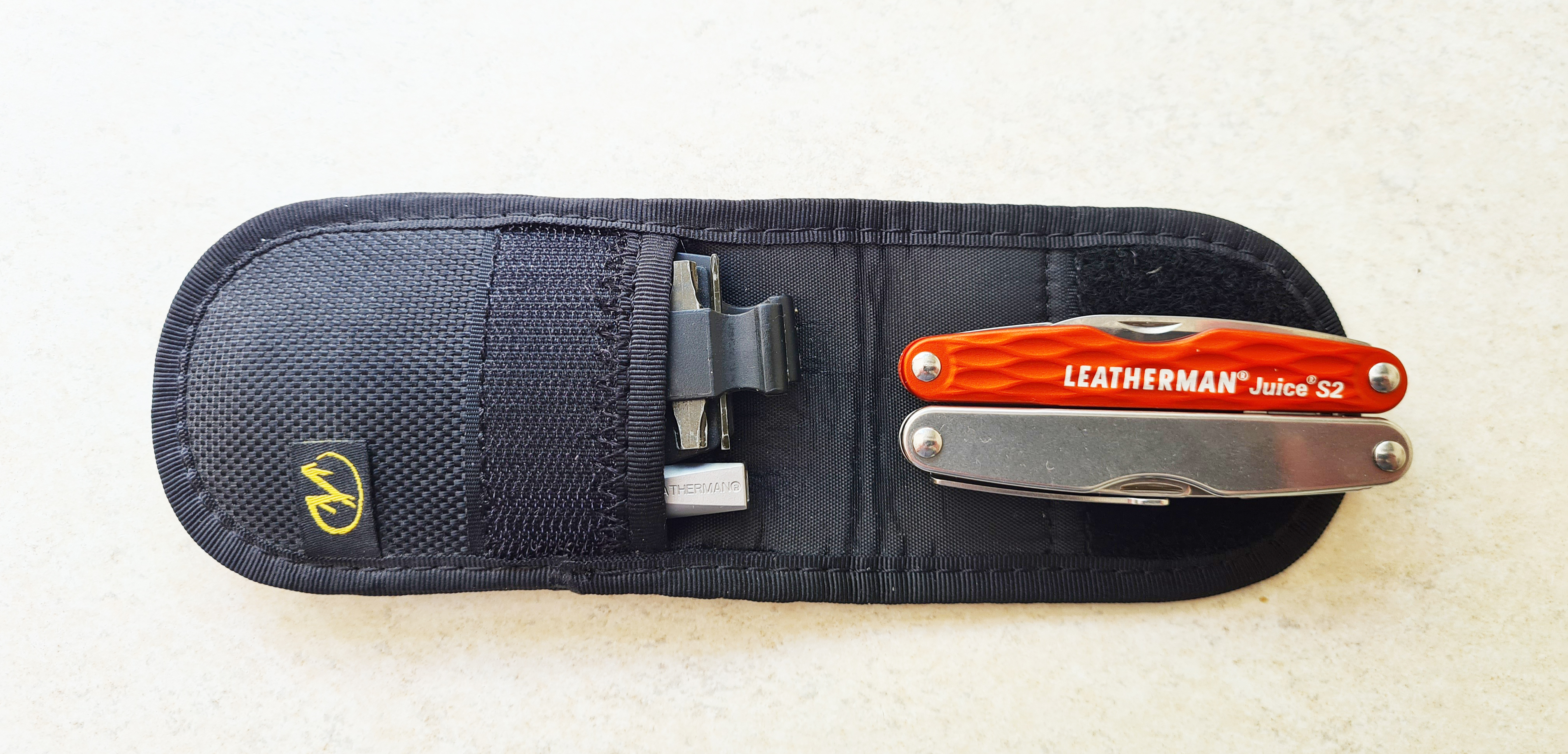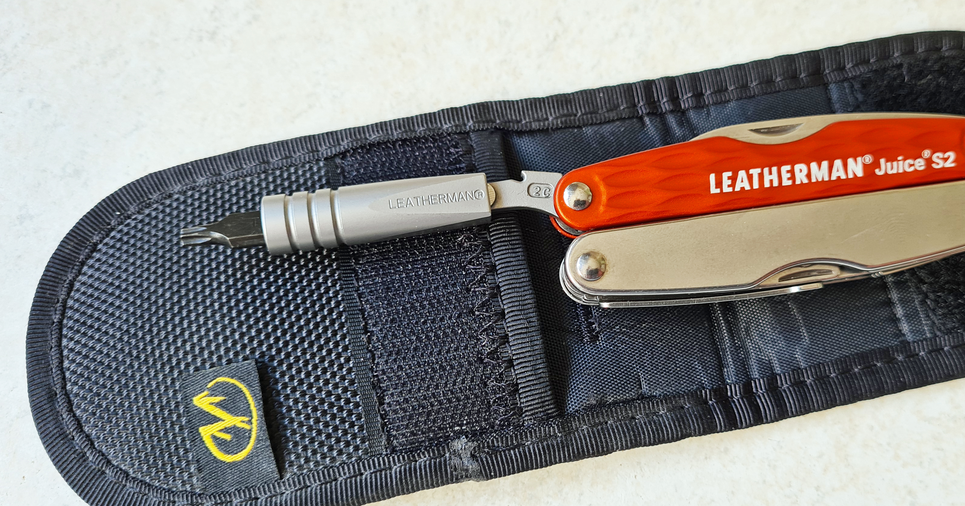 Leatherman produce a number of fabric and leather pouches for their tools, including a slim pouch for the Bit set. All are pretty expensive and far too heavy for taking backpacking. Their advantage is in creating useful and compact kits for everyday carry, though strictly not for use on trail.