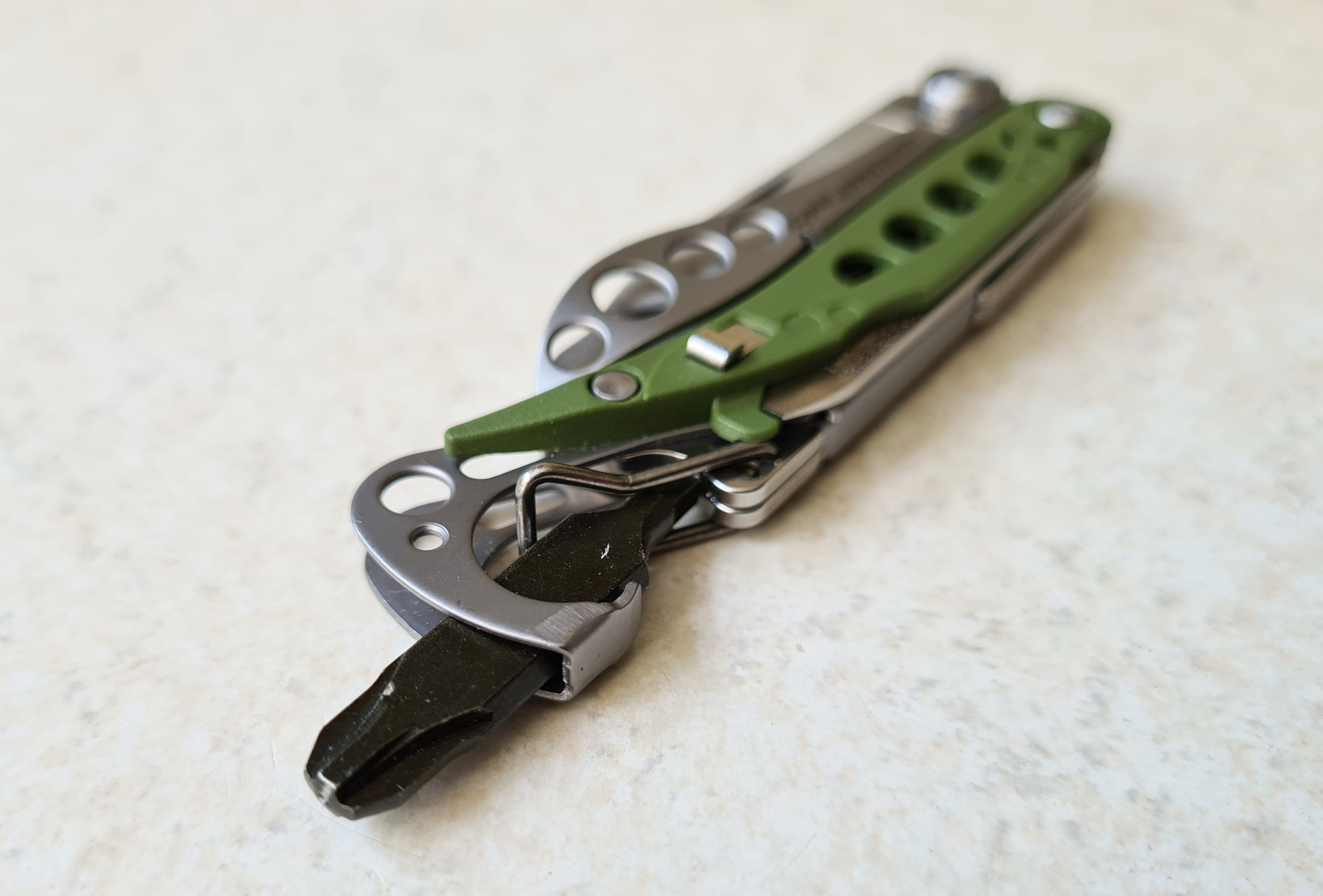 While not in any way intended to be used in such a manner, it is possible to slot a Leatherman bit into the bottle opener/carabiner end on a Leatherman keychain Style. This hack will not handle large amount of torque but will tackle light tasks and can be a very lightweight option. Bits will fit both Style CS and PS in this manner. The Style looks like a smaller version of the Skeletool but is actually very different. However Bits and the Skeletool together do make a ‘fairly’ lightweight combination package.