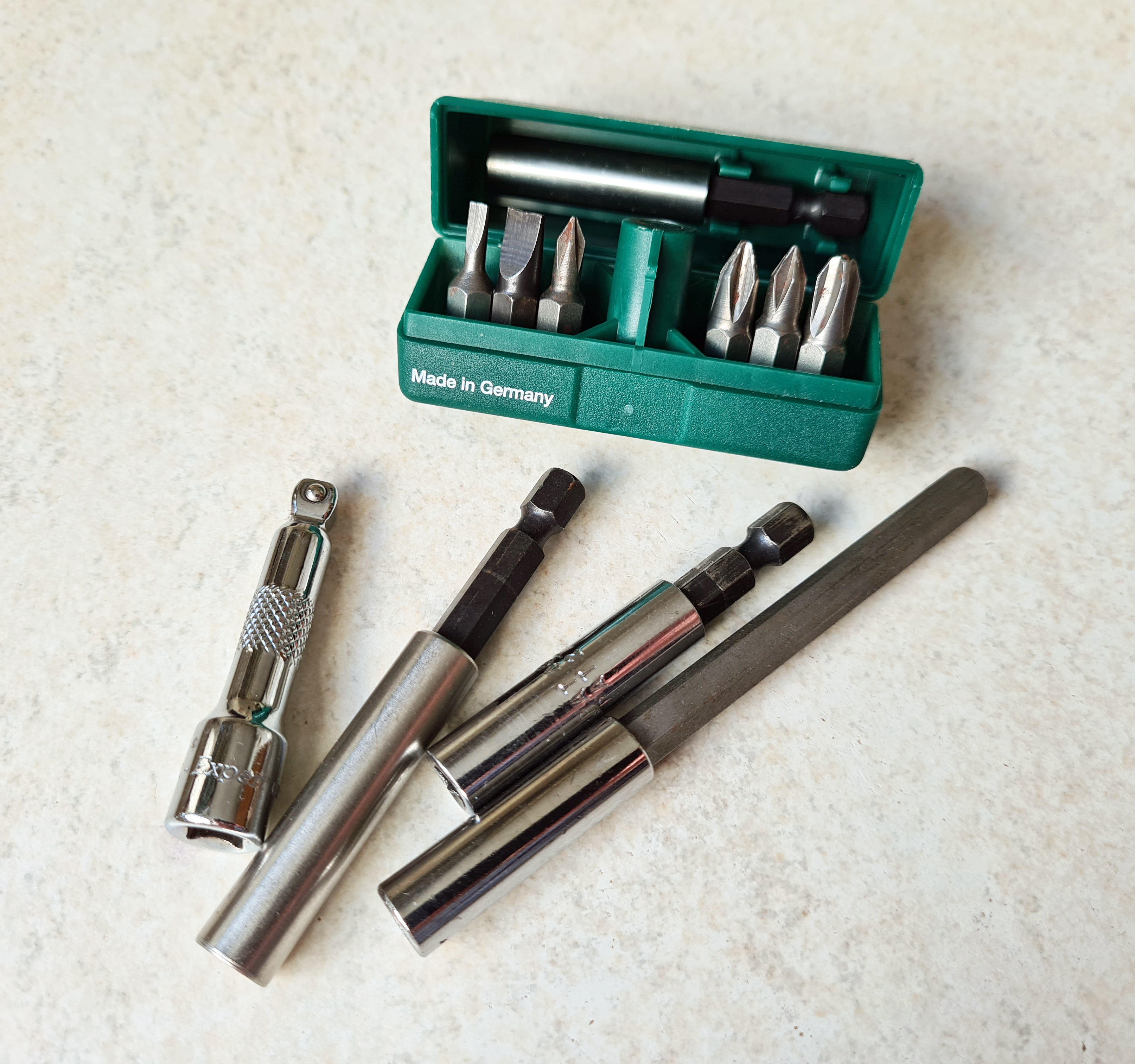 There is no need to simply stick to the Leatherman Bit Extender. If a Leatherman multi-tool fitted with a flat, large bit driver is not carried, it isn’t of much use. It may be that a standard 1/4″ drive extension, of a desired or suitable length, is a preferable option. A single perfectly matched and correctly sized socket head of good quality could also be included if required.