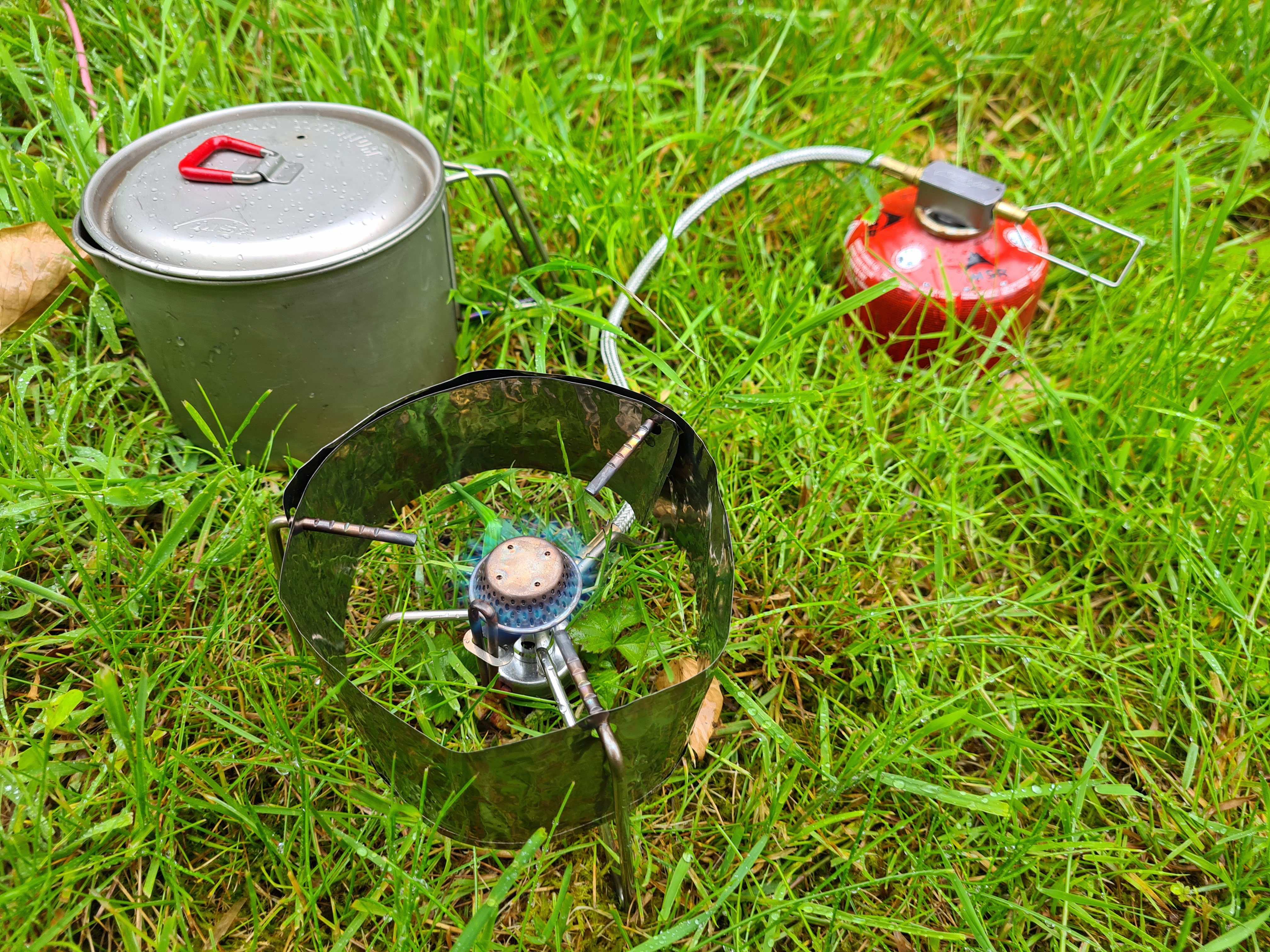 Three Points of the Compass has been looking at the Kovea Spider stove recently, wondering how to improve on it’s windscreen. Here are a couple of ideas.