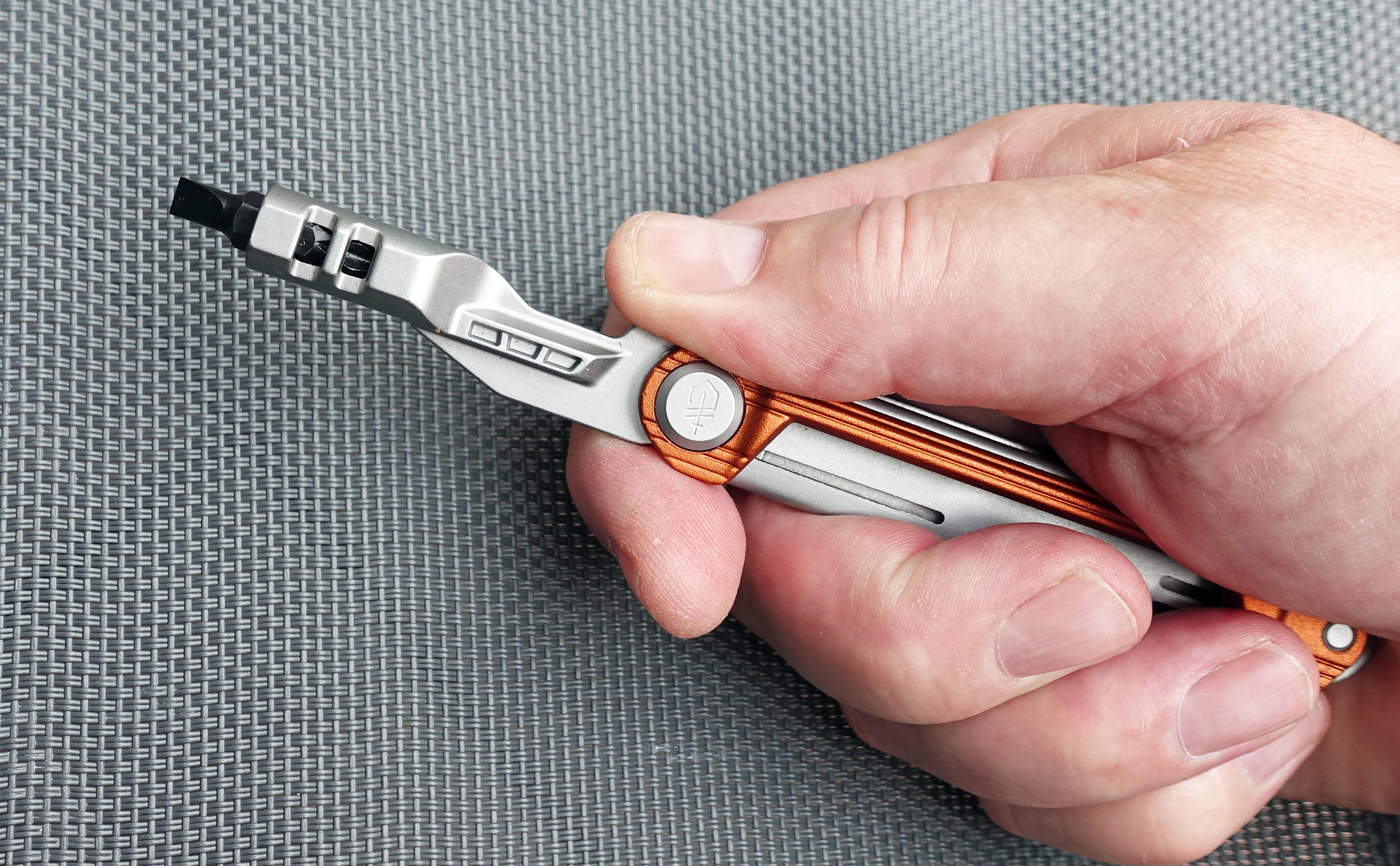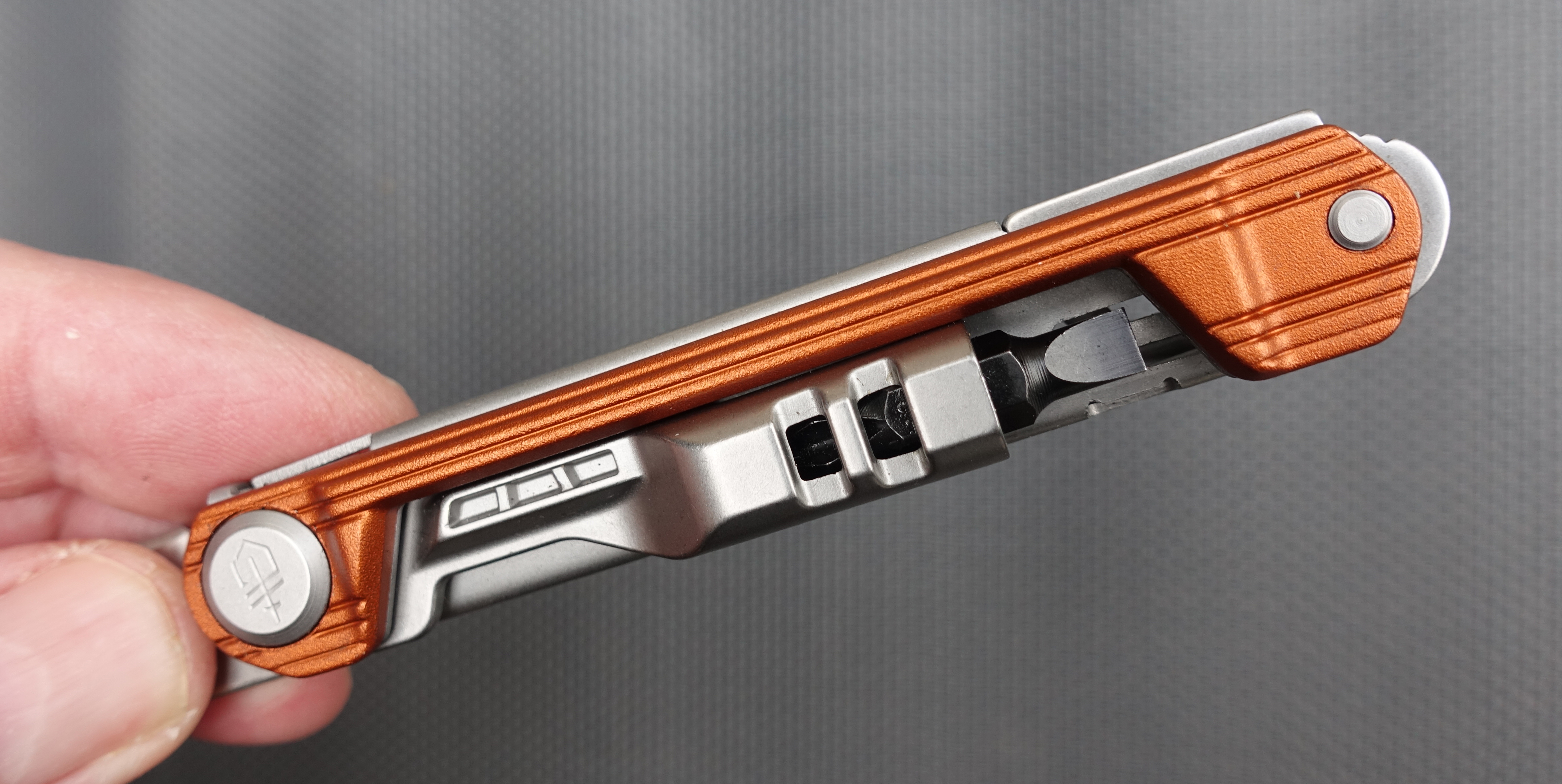 My example is in a fetching shade of Burnt Orange, it is also available in Onyx and Bronze colours. In common with it’s brother, the anodised colour only appears on one side of the tool. The other has a pleasing skeletonised ascetic that also reduces the weight of the tool, just a little.