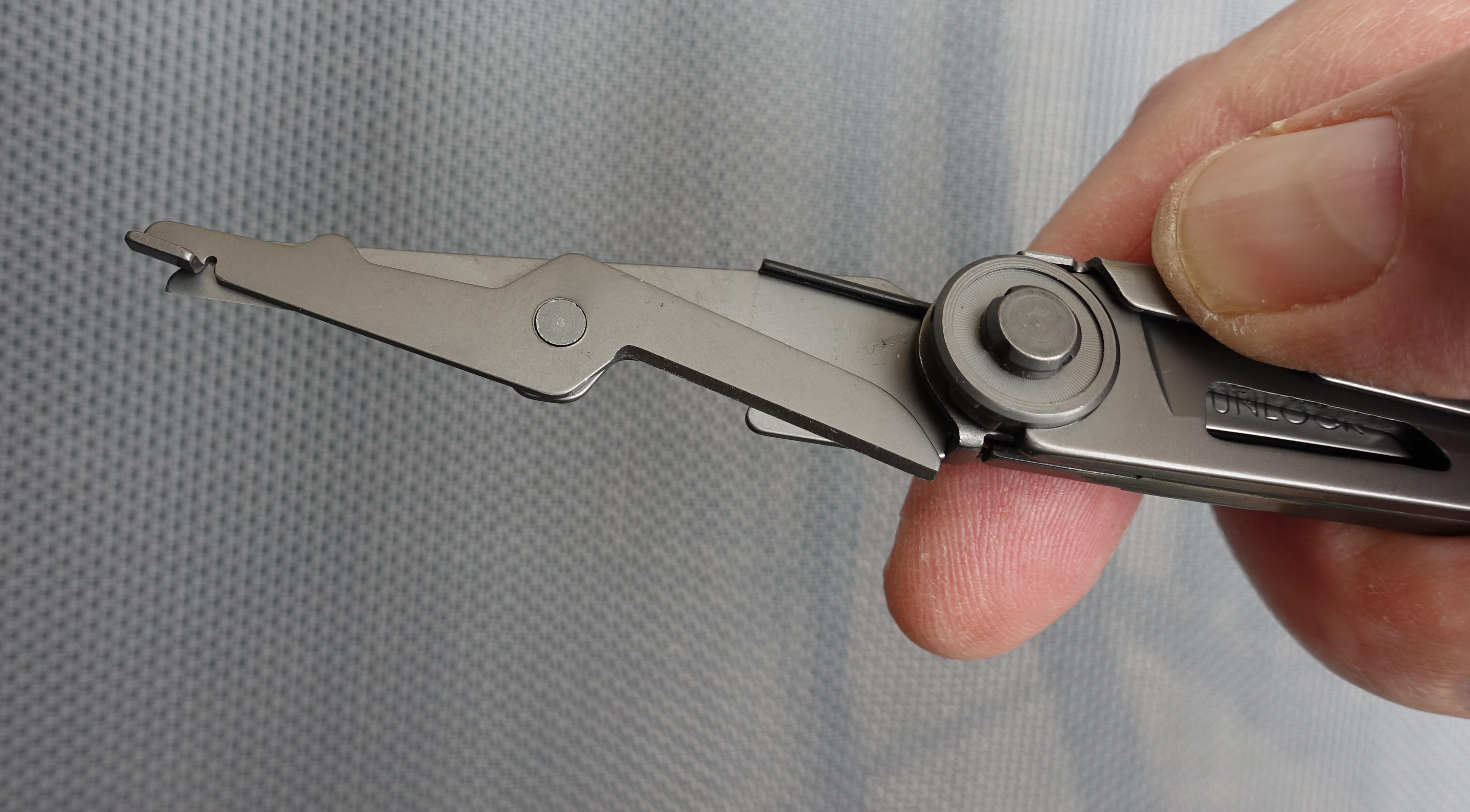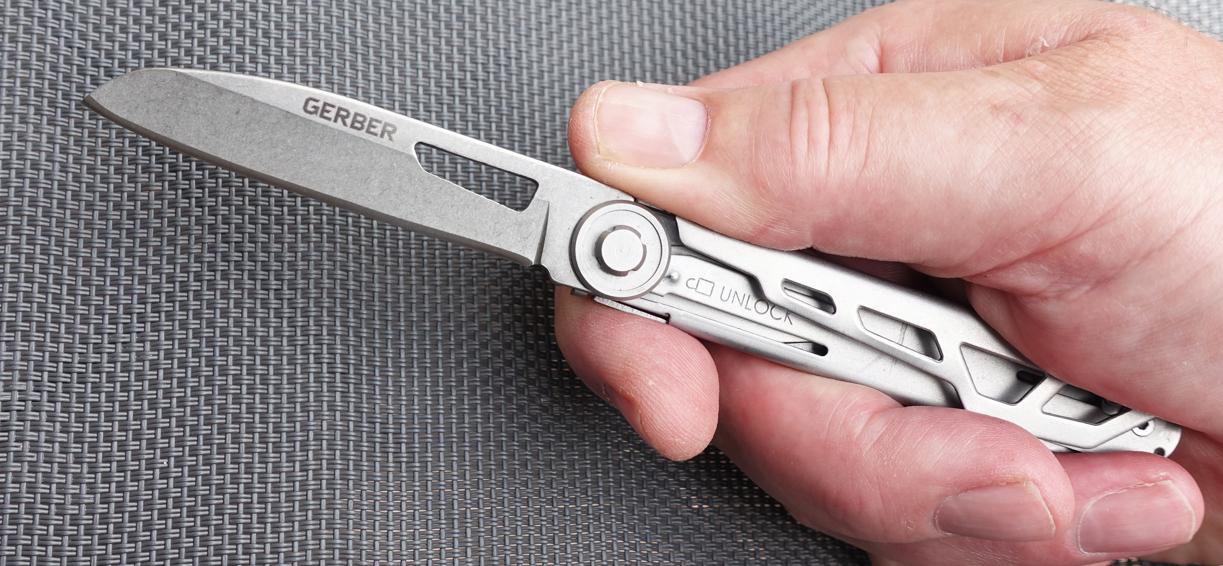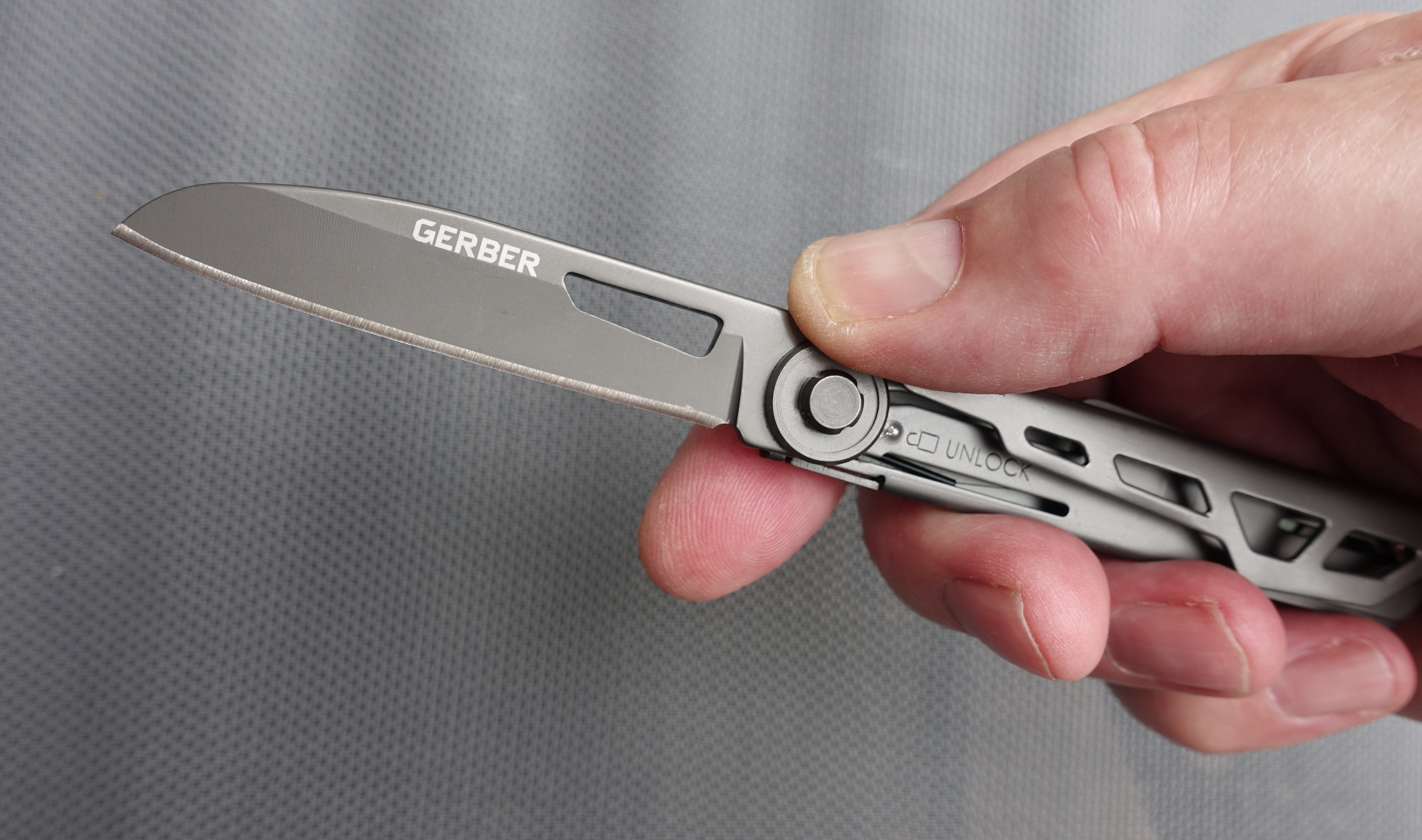 There is only a right-handed version of this tool available, which means that it can be opened one-handed in the right hand. Once open, it can be used in either hand, so lefties need not necessarily be discouraged. The liner lock is easily depressed with the thumb when the tool is being folded. This lock means the tool is non-compliant with UK knife law for street carry but could be carried tucked away in a pack while backpacking.