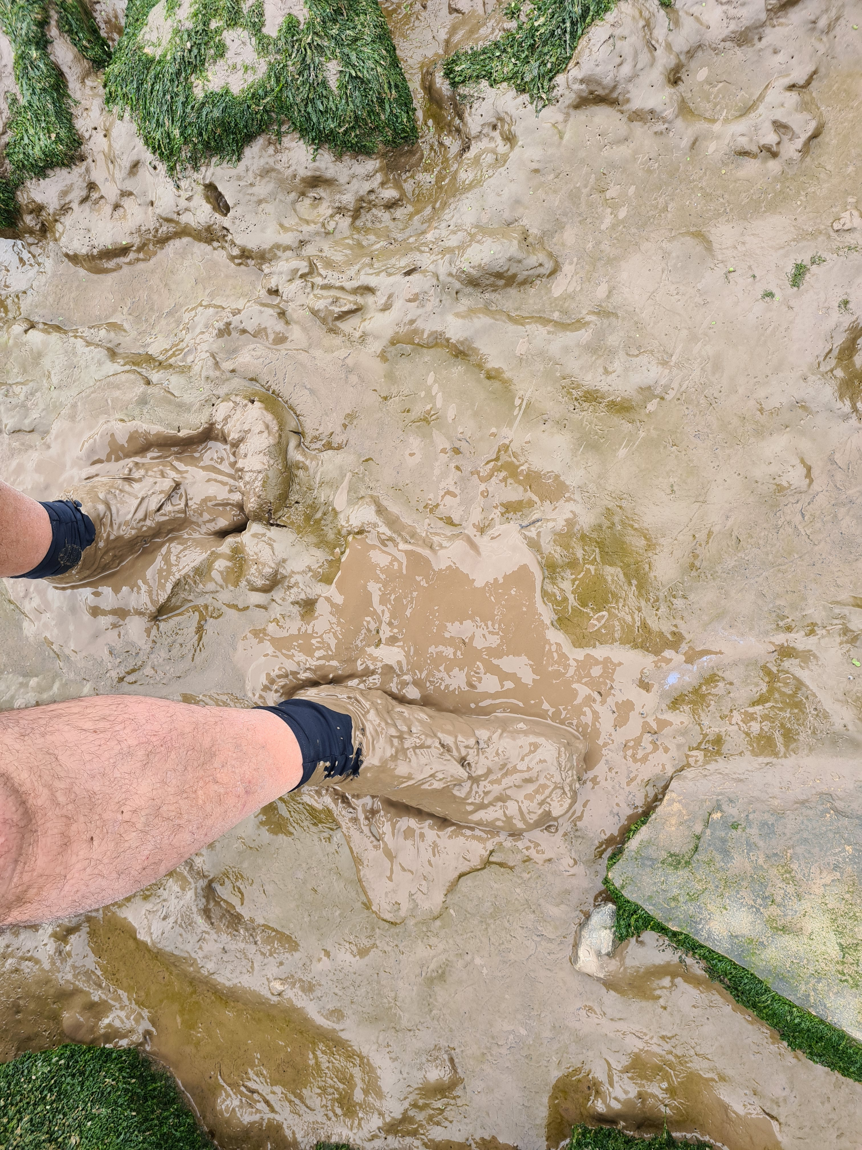 As I got to the end of the coastal section I reached a family, the father with metal detector, seaching the layers of mud for historical treasure. Young daughter was excitedly running to her mother shrieking “we found a coin, we found a coin”. I asked her father what they had found and he sheepishly confessed that it had been a 2006 penny.