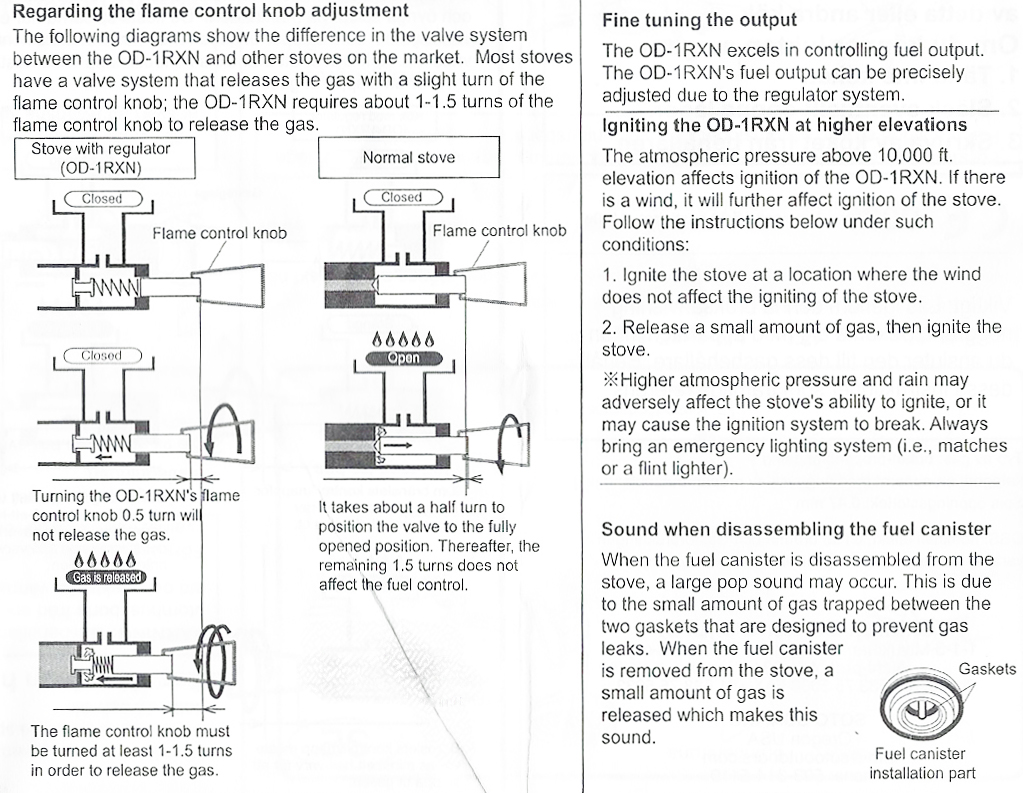 The wire flame control is large and I have handled it easily enough while wearing gloves. If coming to this stove fresh from another gas stove, it can take a little getting used to the control. The Soto is fitted with a micro gas regulator which aids in maintaining a constant gas supply, with reduced spluttering or fading as the temperature falls and as gas pressure within a canister is reduced. When firing up the stove, it seems at first as though nothing is happening. The flame control has to be rotated at least one and half times before the gas is released. This is due to the internal gas regulator. That said, simmer control is effective with this stove, though the wide burner head with large number of gas jets means that a simmer is never minimal but the jet design speads heat across a wide pattern rather than centrally concentrating it. The flame burns blue and hot. Output from the stove is 2800 kcal/h, 3260W, 11000 BTU.