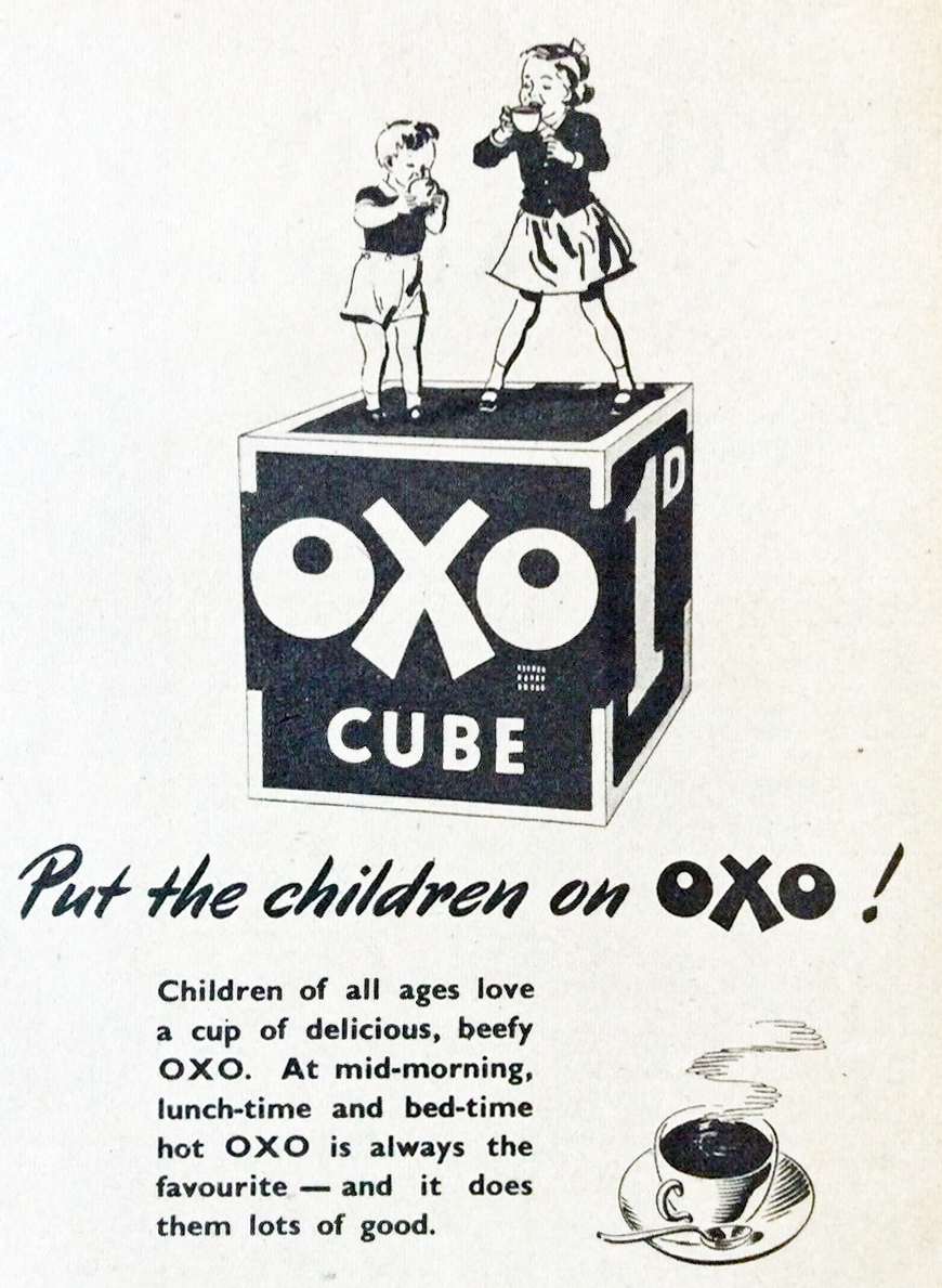 Oxo was heavily advertised as a hot drink in the first half of the twentieth century, added to milk being one suggestion, but less so these days. Oxo cubes and other bouillon brands are more often added to meals by today’s cook. Meat pies, casseroles, stews, shepherd’s pie, spaghetti bolognese, lasagne and other dishes all benefit. Chicken stock cubes are popular too. Cubes and powders find their way into West African and Latin American dishes.
