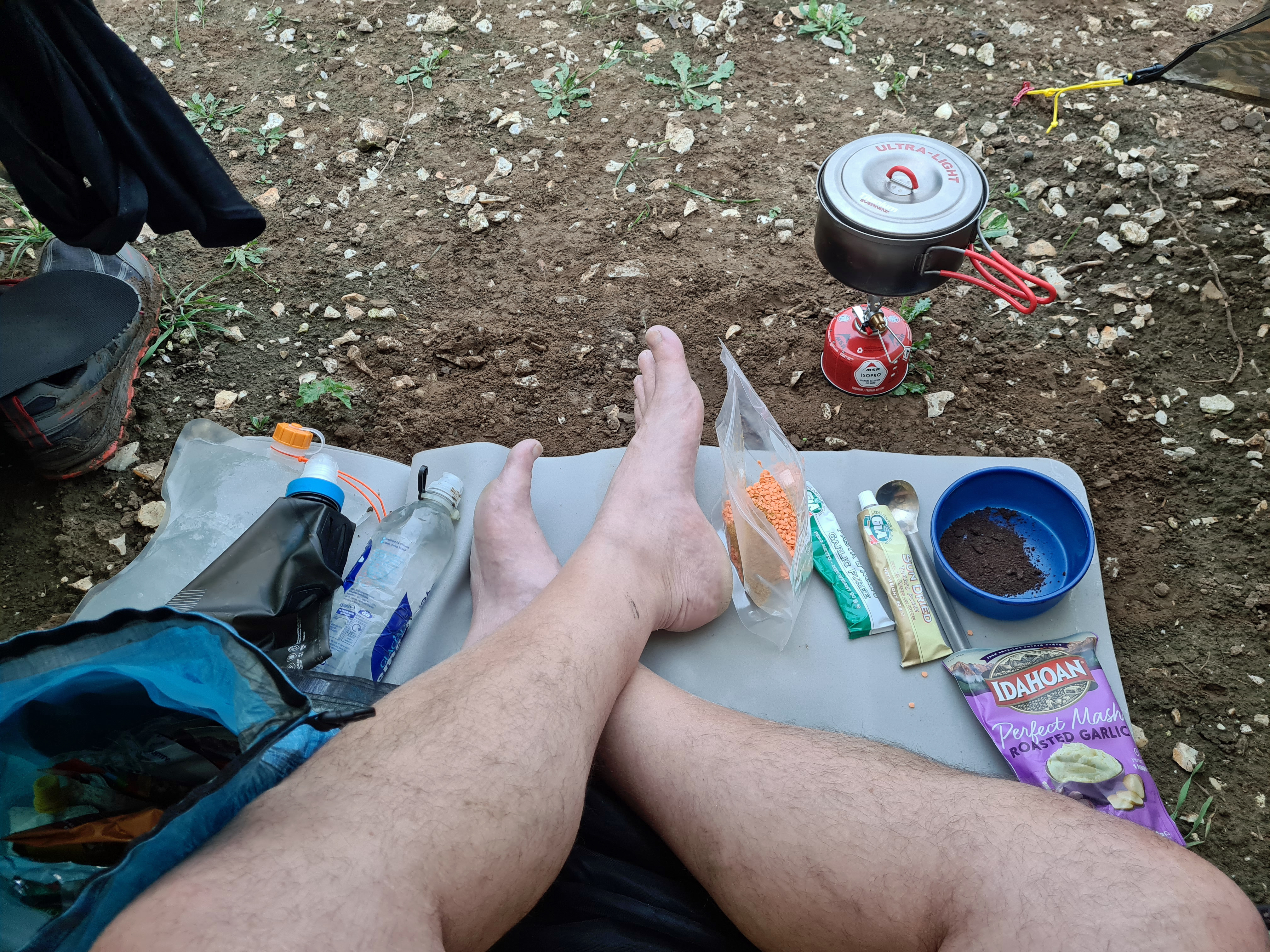 In the kitchen, cubes are crumbled and used as flavouring in meals or gravy or dissolved into boiling water to produce a bouillon. It is the hot bouillon drink that Three Points of the Compass drinks on trail. It makes a hot, hydrating, salty, savoury, flavoursome drink at the end of a day hiking. Preferably then followed up by a pint of tea later. Either the hot Oxo or tea will accompany my evening meal. If I am still thirsty or hydrating then it is usually just water that will be drunk into the evening and if I can be bothered, and can spare the fuel, or feel the need, I will finish off with a hot chocolate prior to going to sleep.