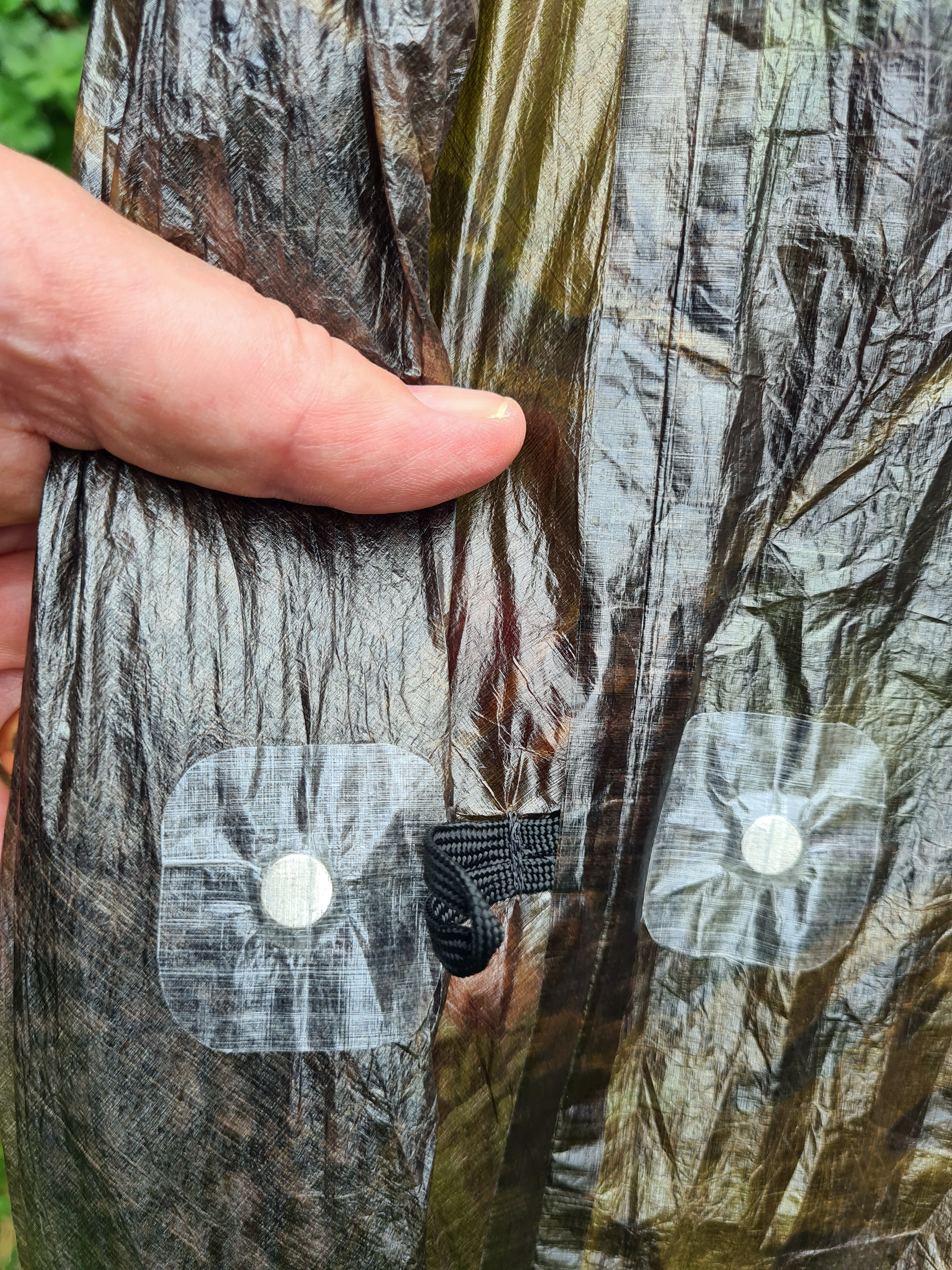 I have kept the original toggles and loops in place as I still want the option of using these in wilder conditions where the magnets may not suffice. I have also fixed the magnets to the outside surfaces so that they work through the adhesive repair patches rather than through the shelter material. This should help prevent any wear to the Duplex itself.
