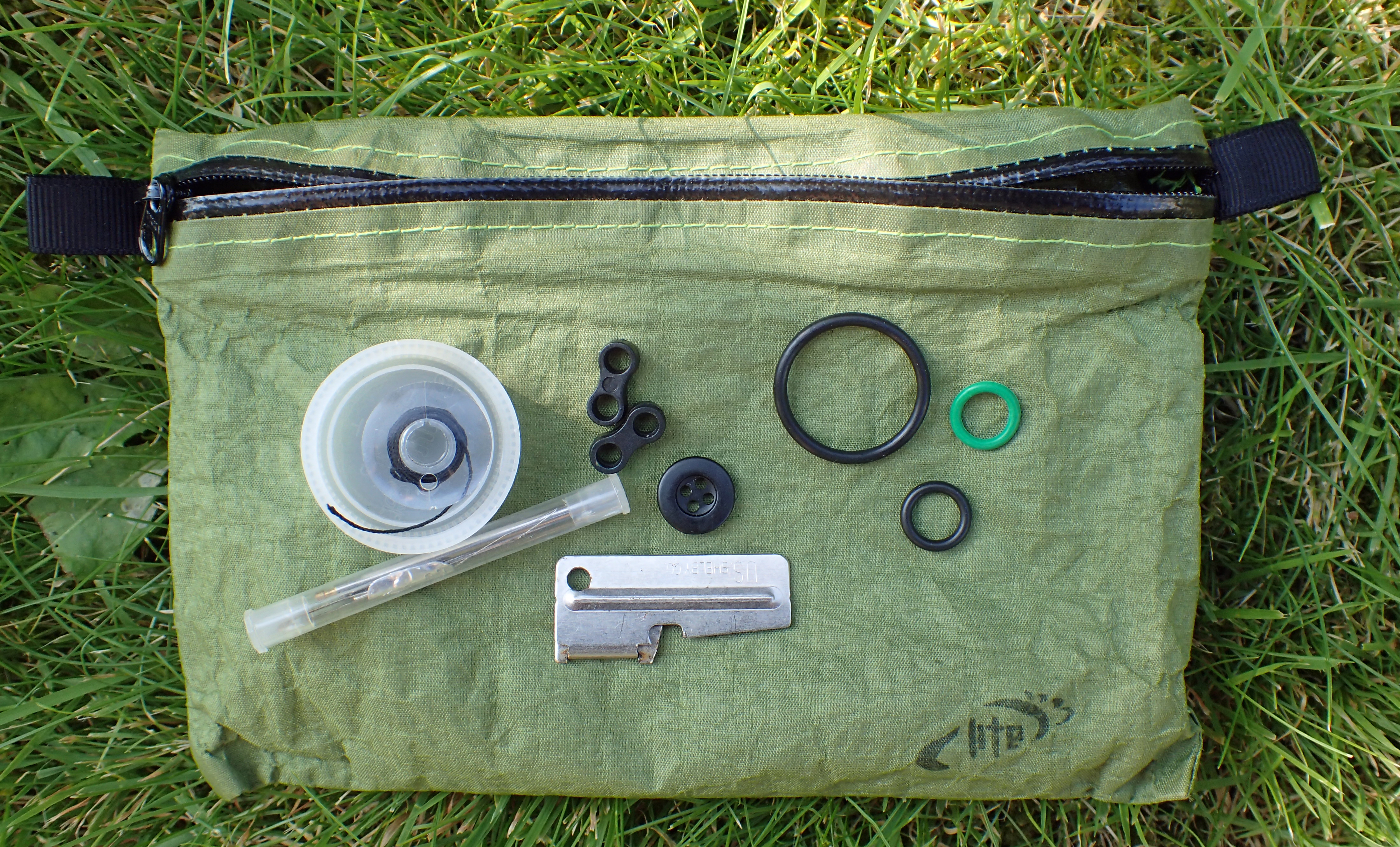 Ditty bag carried by Three Points of the Compass on trail contains replacement O-rings. For simplicity, these remain in here regardless of the stove being carried