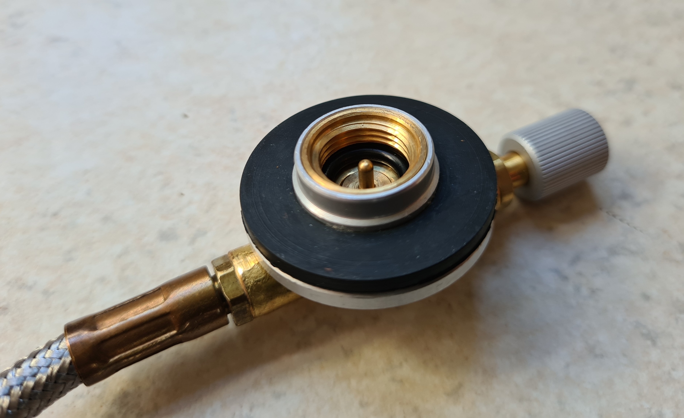 It is not just the O-rings in stoves that should periodically be checked. This gasket seal in a propane canister adapter is working loose in it’s seat