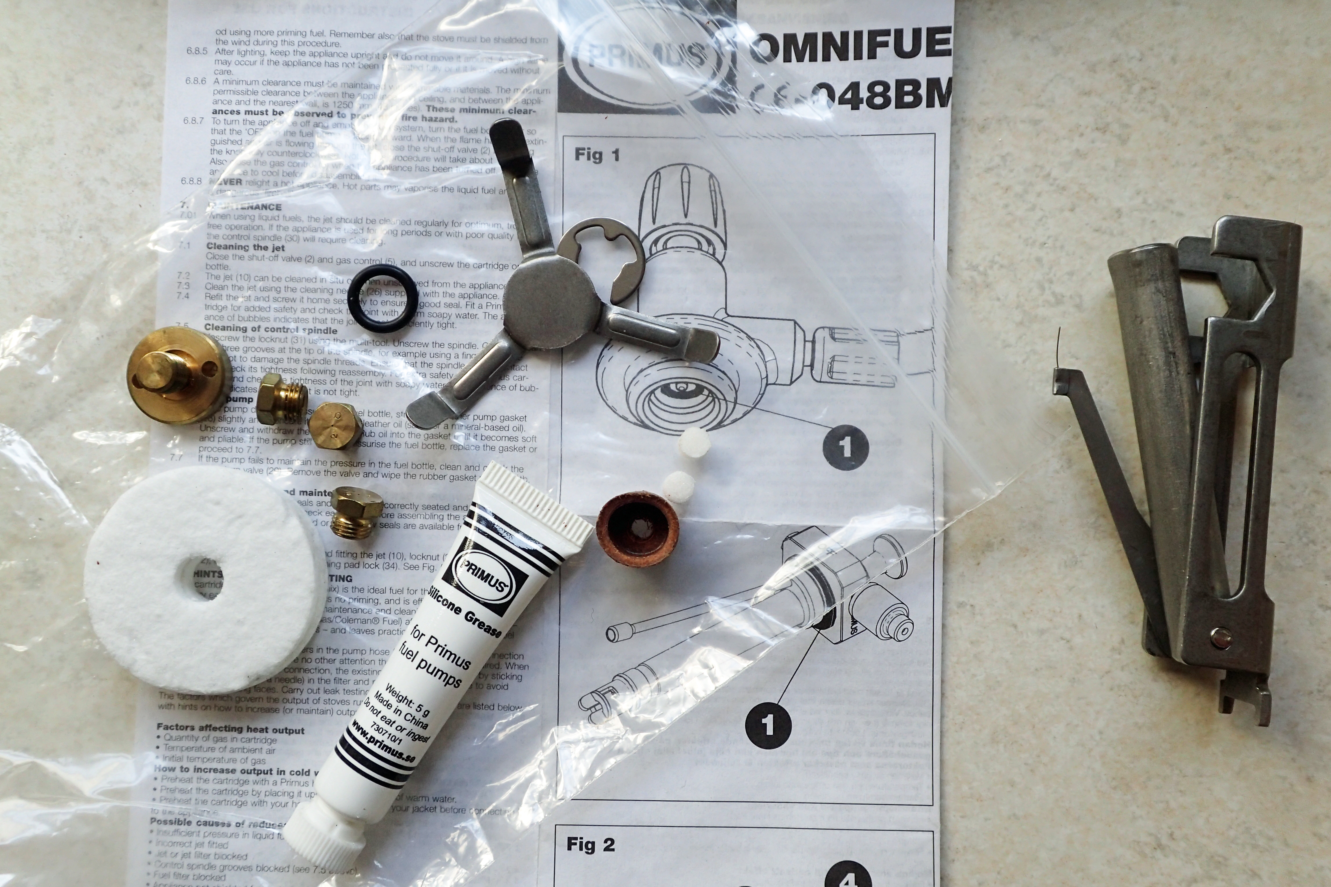 Edelrid Hexon multi-fuel stove comes supplied with repair and spares kit that includes replacement O-rings