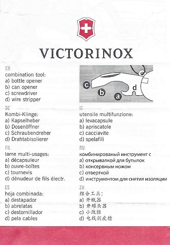 Description of combination tool provided with Victorinox Bantam
