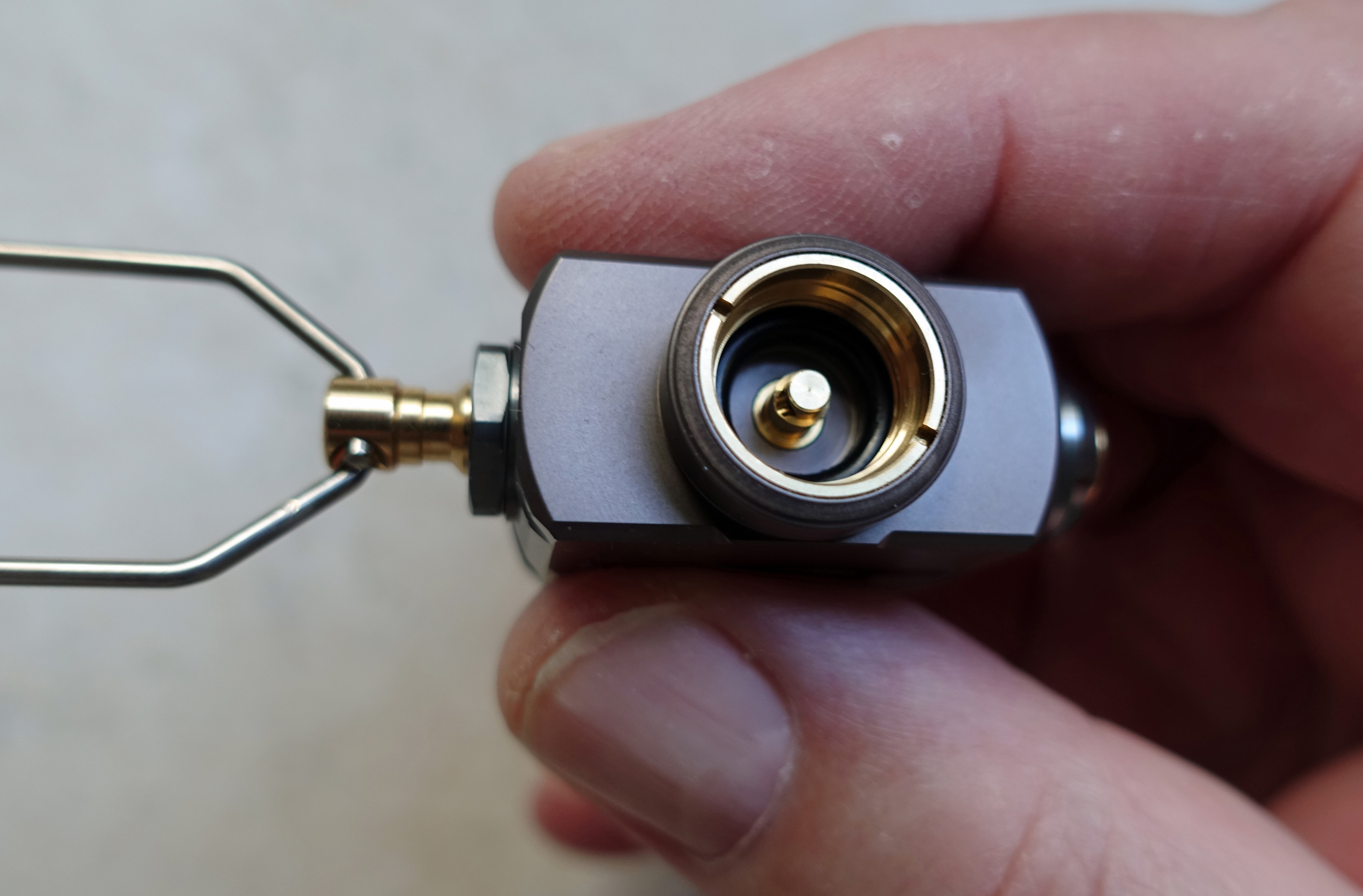 If the canister from which gas is being extracted/drained does not have an EN 417 Lindal type valve, a well-made and reliable adapter will need to be attached to the G-Works Gas Saver first. Three Points of the Compass looked at three connector adapters here. Besides those three, there are also some ridiculously little adapters that can be used with the bayonet type cartridges that could also, potentially, be carried on trail. They are looked at in a separate blog.