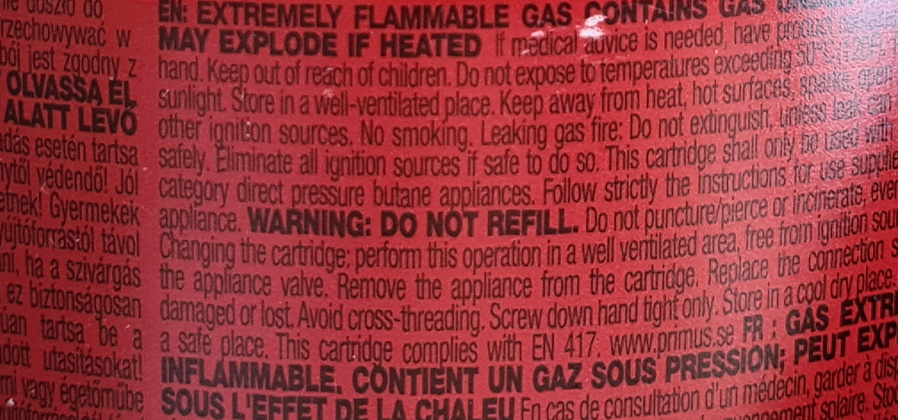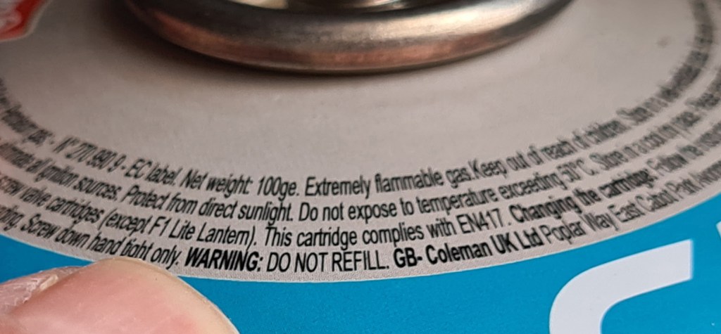 As I mentioned at the beginning, this procedure is hazardous, potentially dangerous. The variously branded gas canisters are pretty much unambiguous in their messaging on the side of their containers, even if the text is tiny and takes a bit of finding- “DO NOT REFILL”. Using a gas saver directly ignores the manufacturer instruction, on your own head be it…