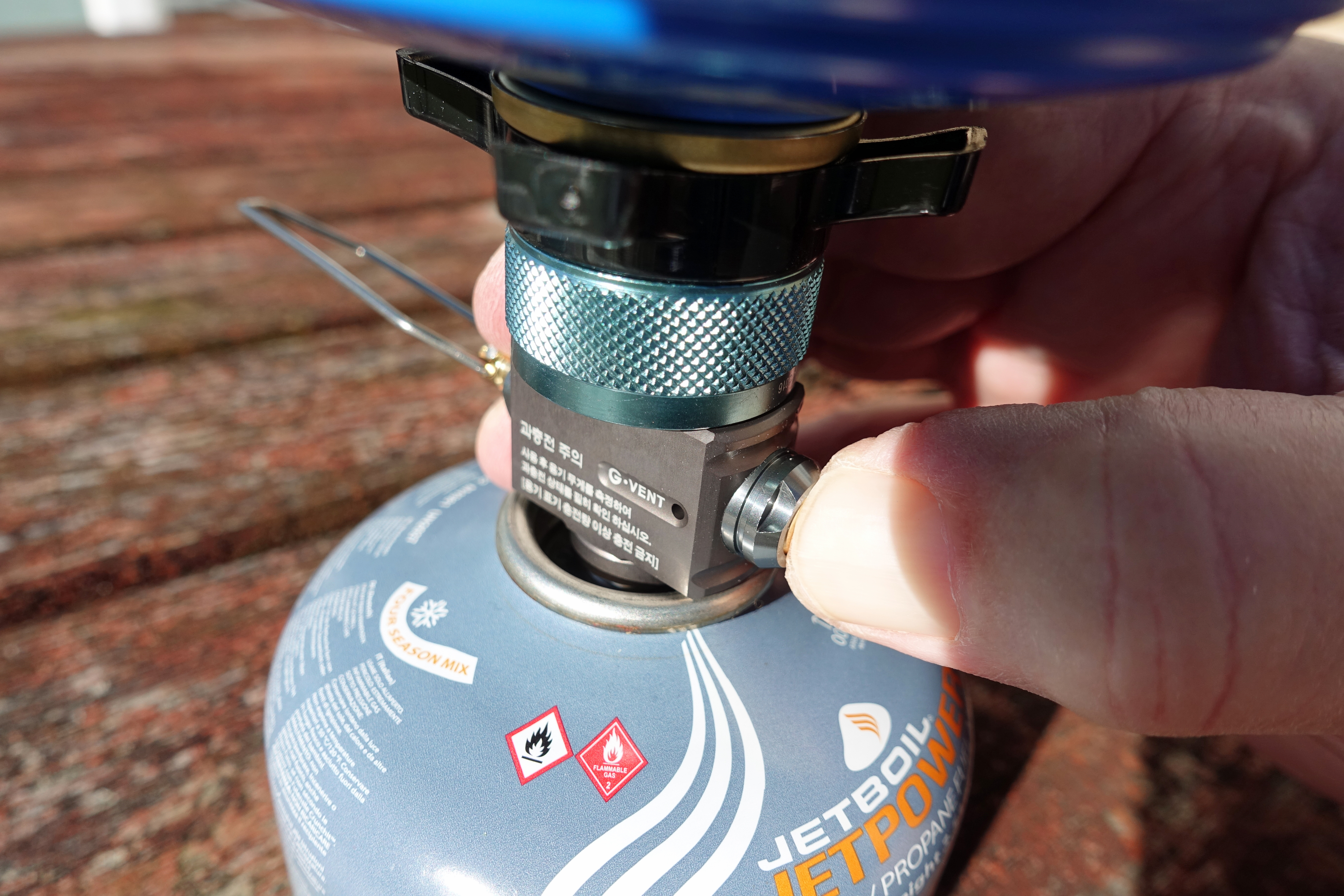 Playing around with an ‘unofficial’ contraption like the G-Works Gas Saver could potentially result in a stuck EN417 canister valve. Unlikely and I have never experienced it. If it does happen, try screwing a stove on and off and that may reseat the valve. If not, then leaking gas is a BAD THING. Leave it outside, well ventilated and away from flames.