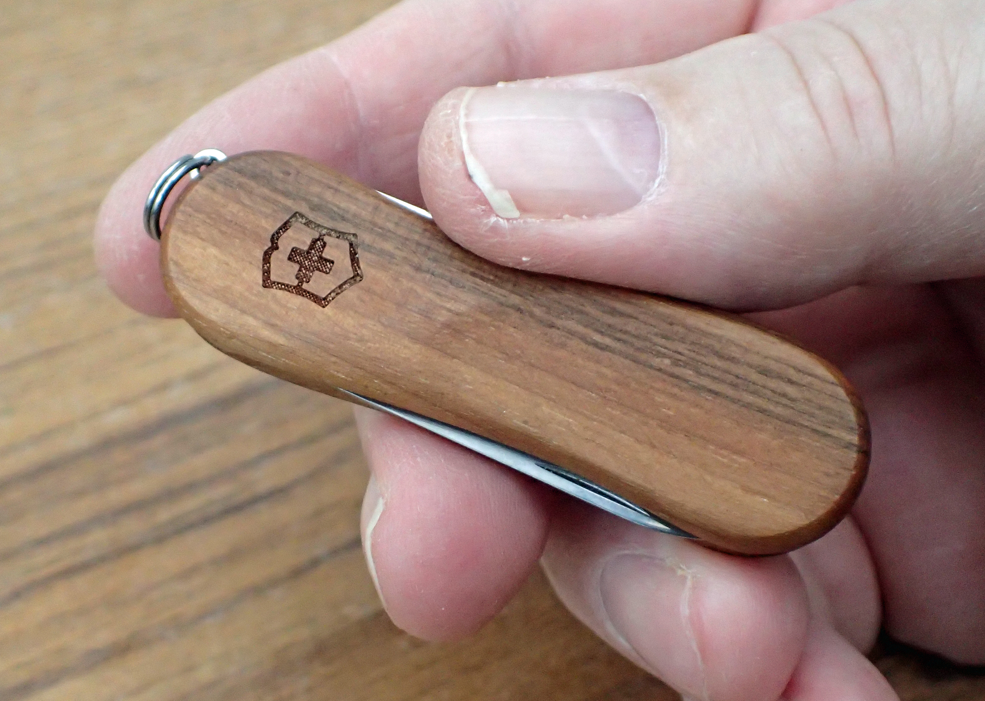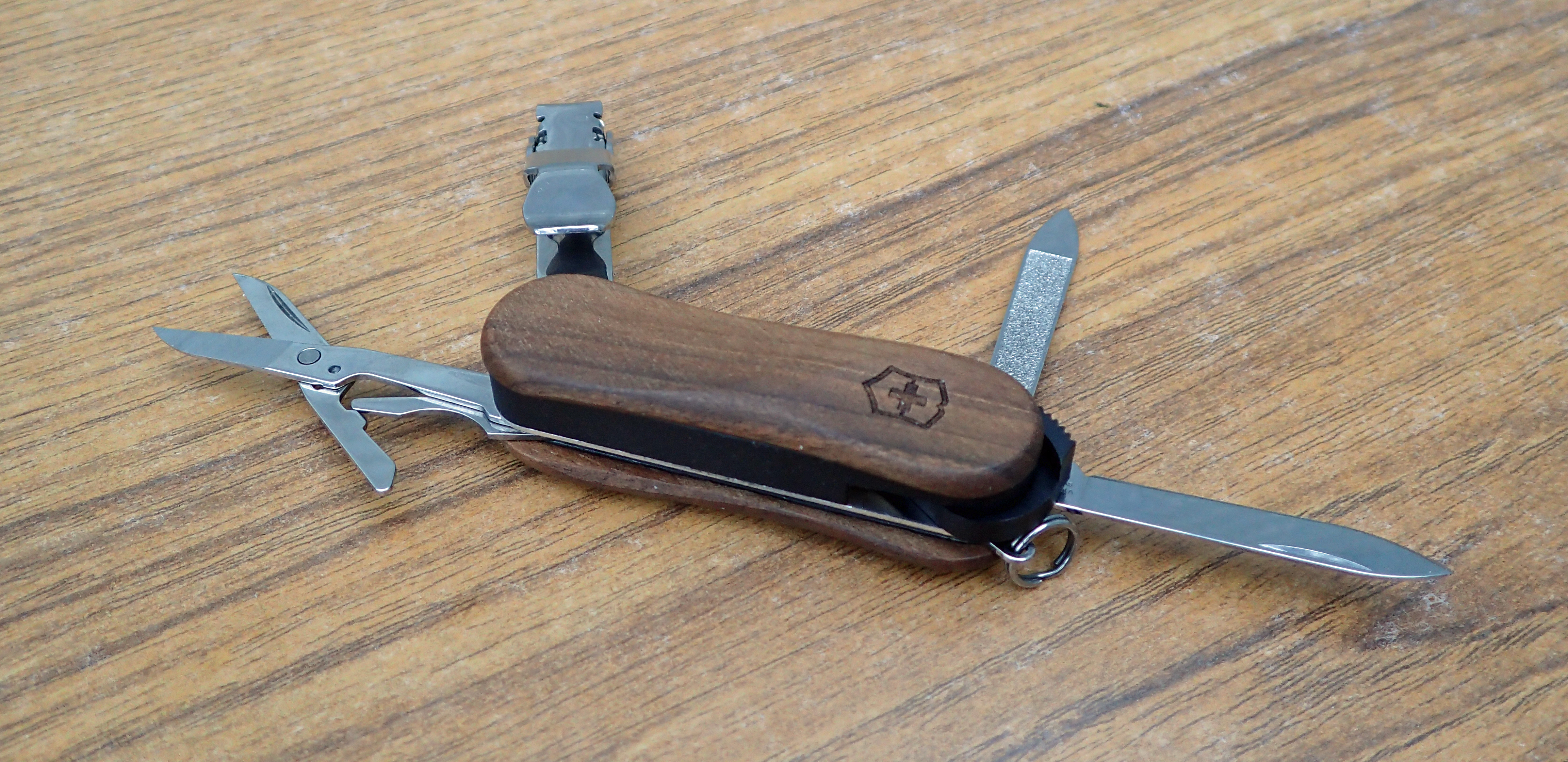 There is a slightly simpler but more attractive version of the NailClip 580 from Victorinox. The NailClip 580 Walnut has moulded wooden scales and, in common with the EvoWood 81 above, does away with the toothpick and tweezers. No loss there I feel, but there is no subsequent loss in weight.