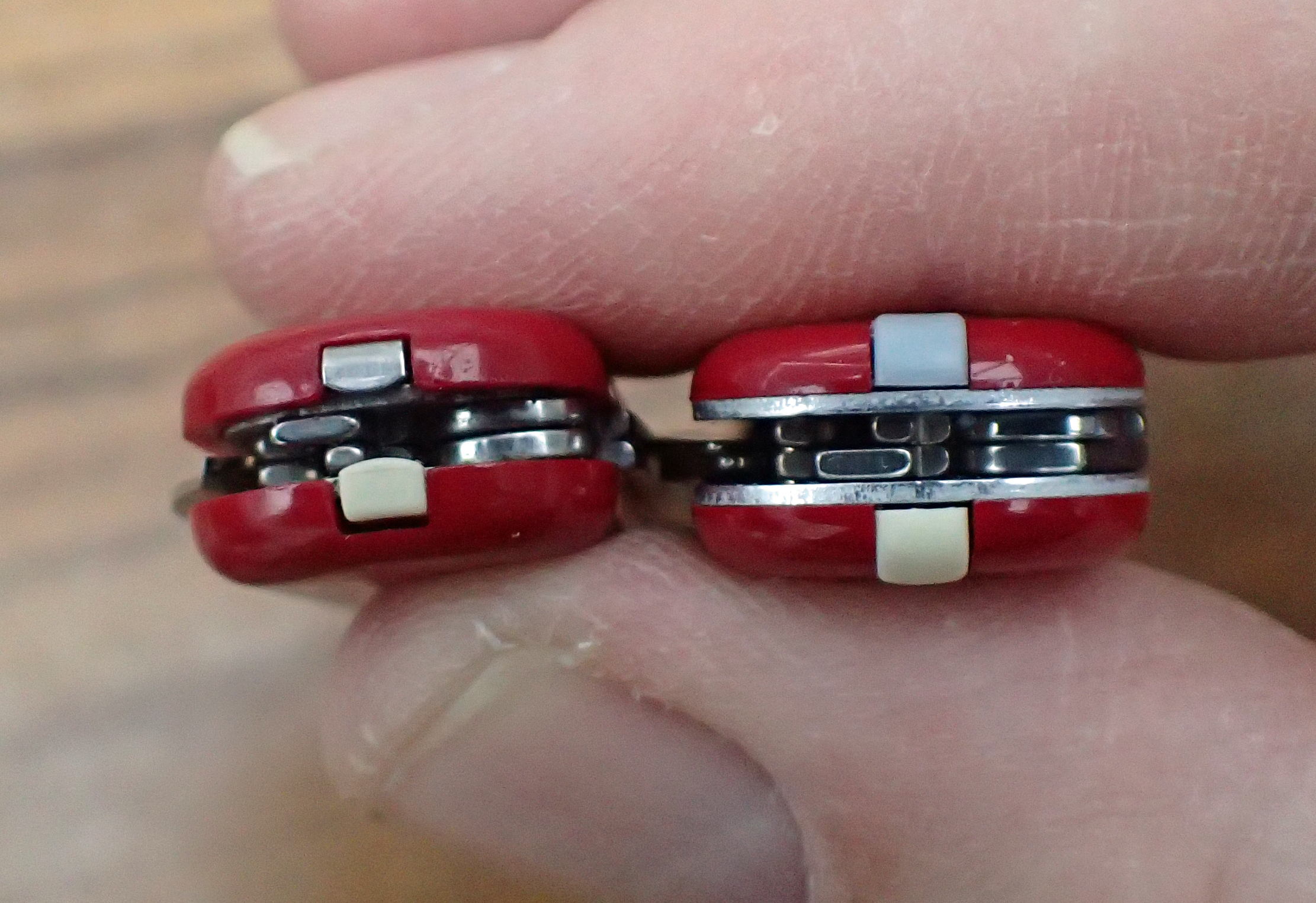 All these knives have non-locking slip joints with modest length blades and easily fall within UK ‘knife-carry’ law. The overall blade length of 44.5mm on these 65mm long tools have an actual cutting edge of 39mm. The blades measure 1.15mm across the spine. Steel quality and blade thickness is common to all of these small knives. Of interest, there was an uncommon version of the Esquire with a serrated blade. However that blade can be more difficult to sharpen whereas plain blades are relatively easy.