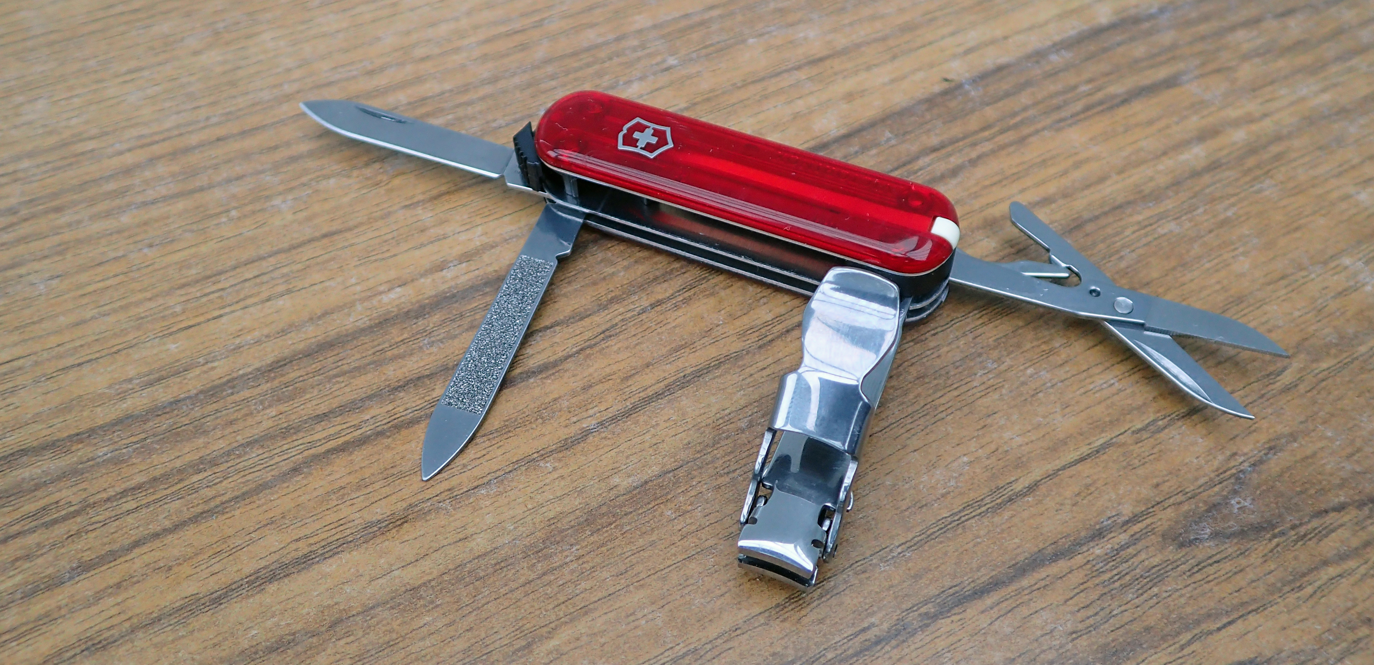 There is also an even simpler 65mm long tool with a nailclipper that I am reluctant to draw much notice to here because it eschews any useful main tools beyond the clipper itself. The 26.4g Victorinox NailClip 582, model 0.6453 is firmly targeted at personal grooming having no tools beyond nailclipper, tweezers and toothpick. Its usefulness on trail, or for that matter, anywhere else, is extremely limited as a result.
