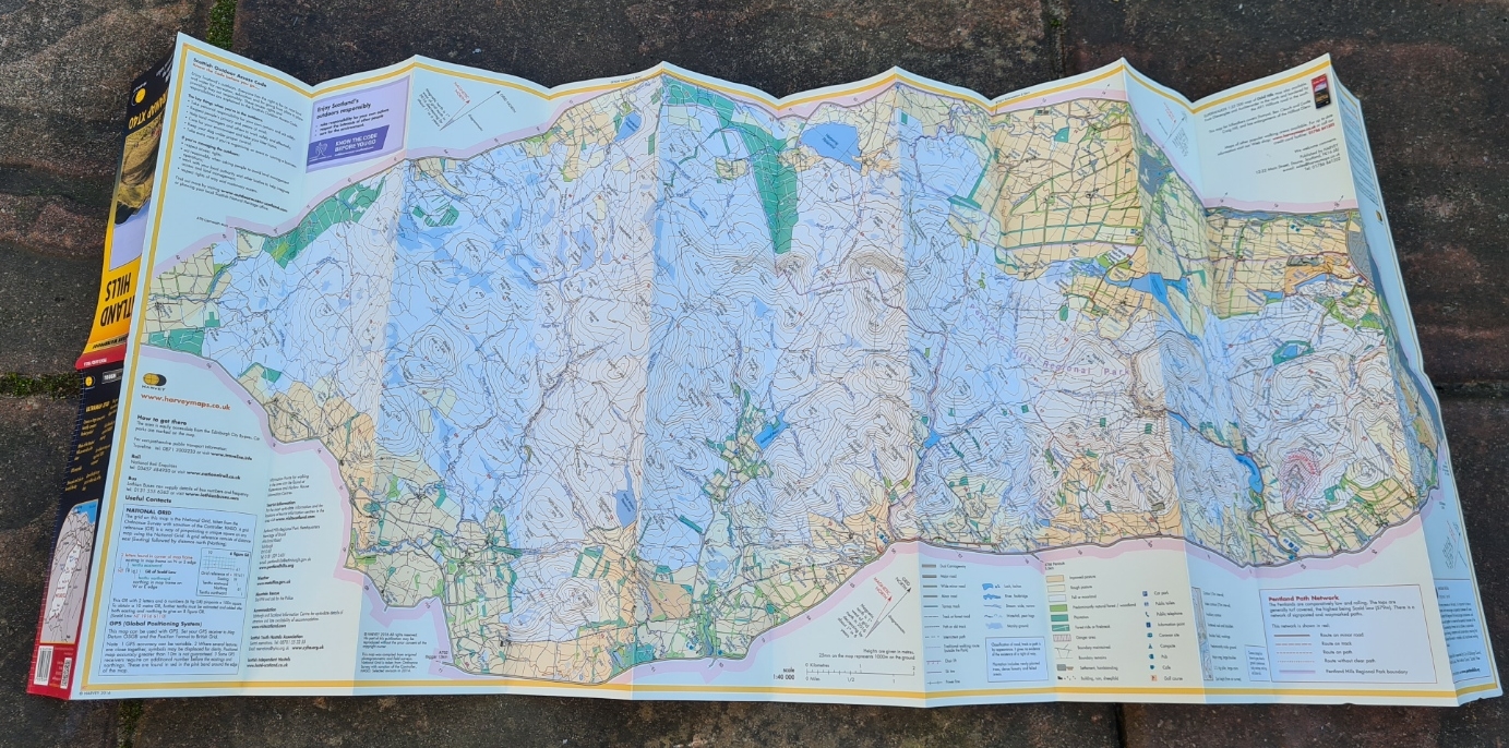 These maps have (mostly) improved over the years. The first Harvey maps that I purchased that covered the South West Coast Path were printed on one side only and on an extremely durable weight of waterproofed paper rather than the synthetic waterproof paper employed now. In 2013 the 630 mile trail was spread over six maps, each weighing 86g, over half a kilogram in total. The tear resistant polyethylene ‘paper’ now used by Harvey, which I believe is sourced from Polyart, is possibly not quite as durable as the older heavier weight but I have found that while creases will get a little worn and print faded, everything stays together under hard wear and I have never actually destroyed any maps I have used in particularly foul conditions.