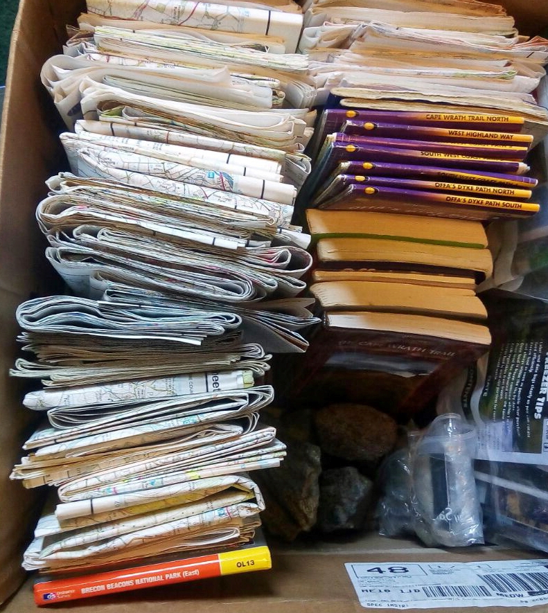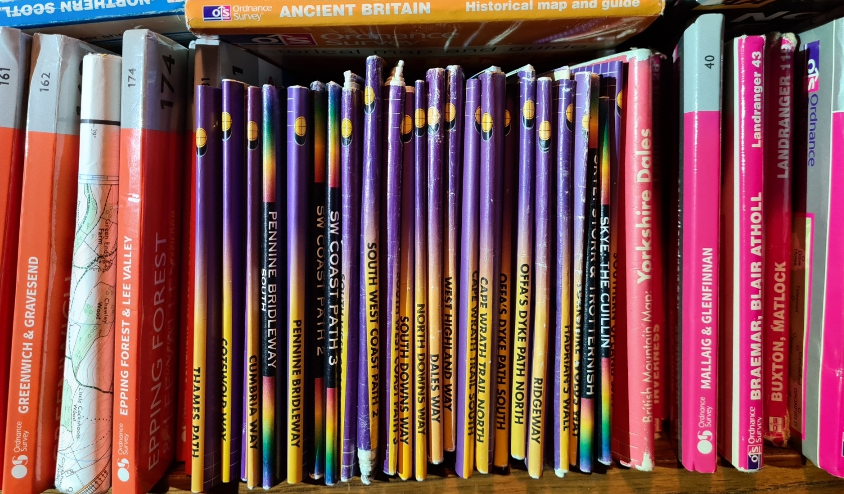 Three Points of the Compass favours paper maps. These are the maps (sans covers) used on a 2000+ mile hike across mainland UK in 2018. While 1:25 000 O.S. Explorer maps led me across England and 1:50 000 O.S. maps for much of Scotland, nine of the lighter 1:40 000 Harvey maps were used for defined National Trails and Long Distance paths