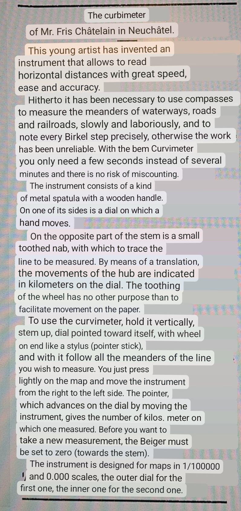 So what happened to Fritz Chatelain? Only whispers survive through the gossip columns of the time. He married, he had children, he advertised for servants, maids and manufacturing employees, he gained a reputation for producing fine instruments and stood on committees and judged competitions, his products gathered plaudits and awards. But not everything was rosy. He divorced, later, an announcement was made in the local paper Feuille d’Avis de Neuchâtel of bankruptcy proceedings against Fritz Chatelain- ‘manufacturer of watches and precision instruments‘, on 24 January 1900. However the business survived as products, including map measures, bearing the FC brand, continued to be produced. I will look at an FC branded Universal Map Measure model in a future post.