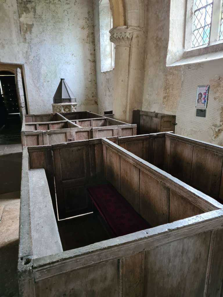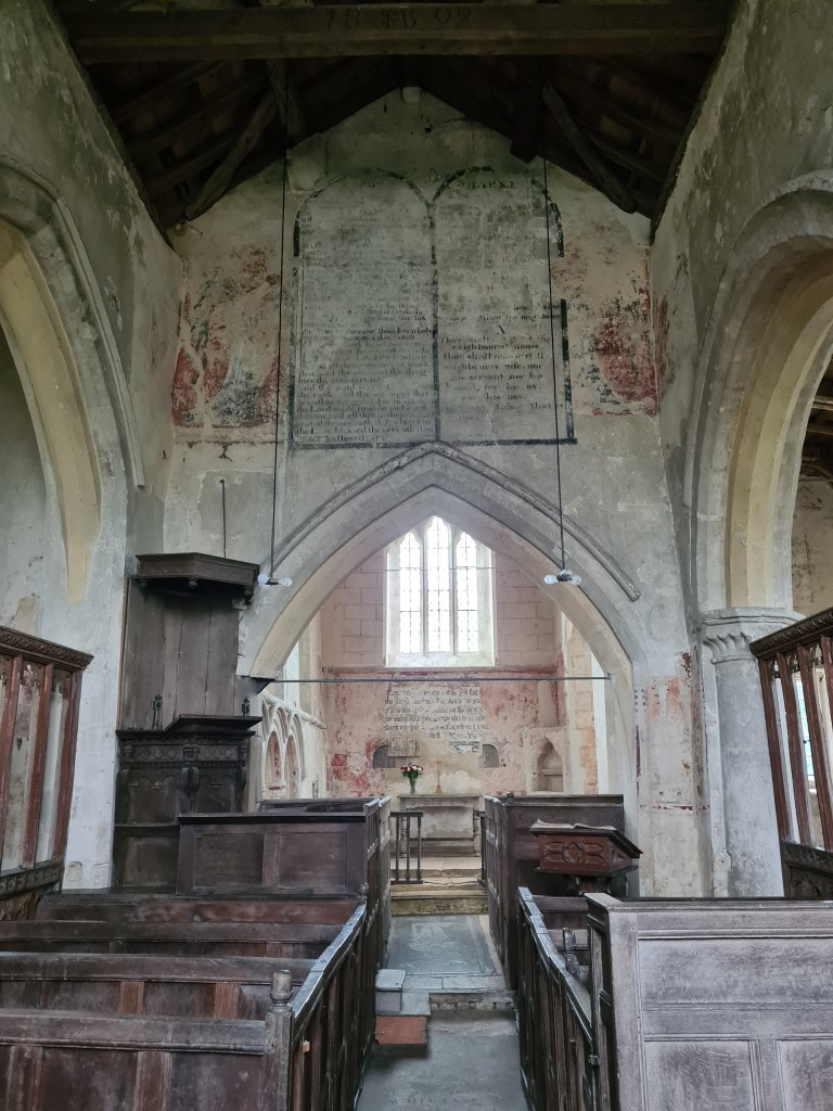 Having taken the improved ‘new’ route of the Thames Path along the river, we stopped in at the evocative St John the Baptist, at Inglesham. Now in the hands of the Churches Conservation Trust, this is a remarkable example of an unrestored Church. The church was given to the monks of Beaulieu in 1205 and each century has left its imprint. Fragments of 14th c. wall paintings, 15th c. Font, timber screens from the 16th c. Pulpit and pews from the 17th and 18th centuries, and so on.