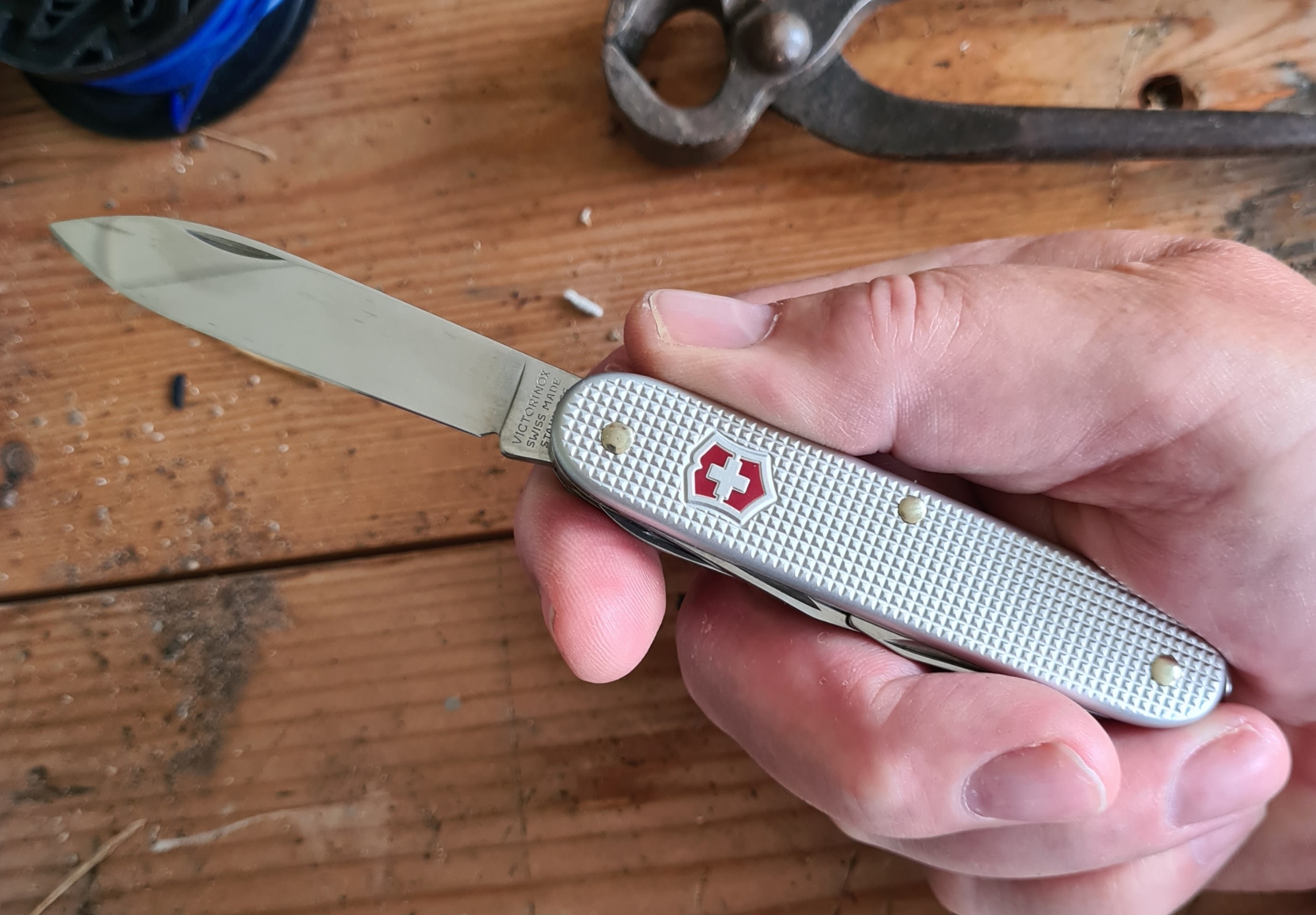 The spear shape blade found on both Pioneer X and Farmer is a little longer and a little thicker than the main blades found on similar length non-Pioneer range knives from Victorinox. This has gained the 93mm Pioneer range the ‘sturdy’ moniker from Victorinox and despite being a folding style knife the blade is capable of fairly tough work. Spines are 2.75mm thick compared to the 2mm thick blades found on Victorinox’s 84mm range of knives. The blades have an asymmetrical shape to enable the reamer to sit alongside the blade when folded. I have never found this to affect their cutting performance.