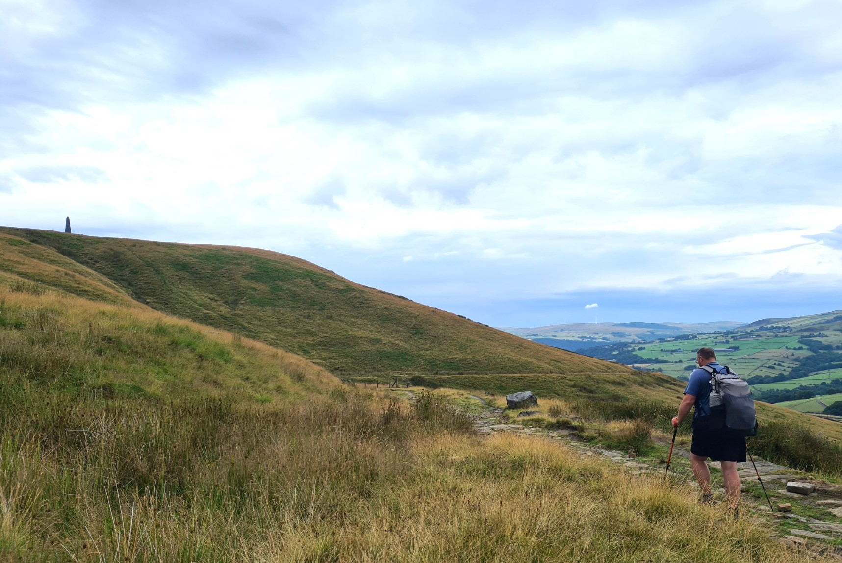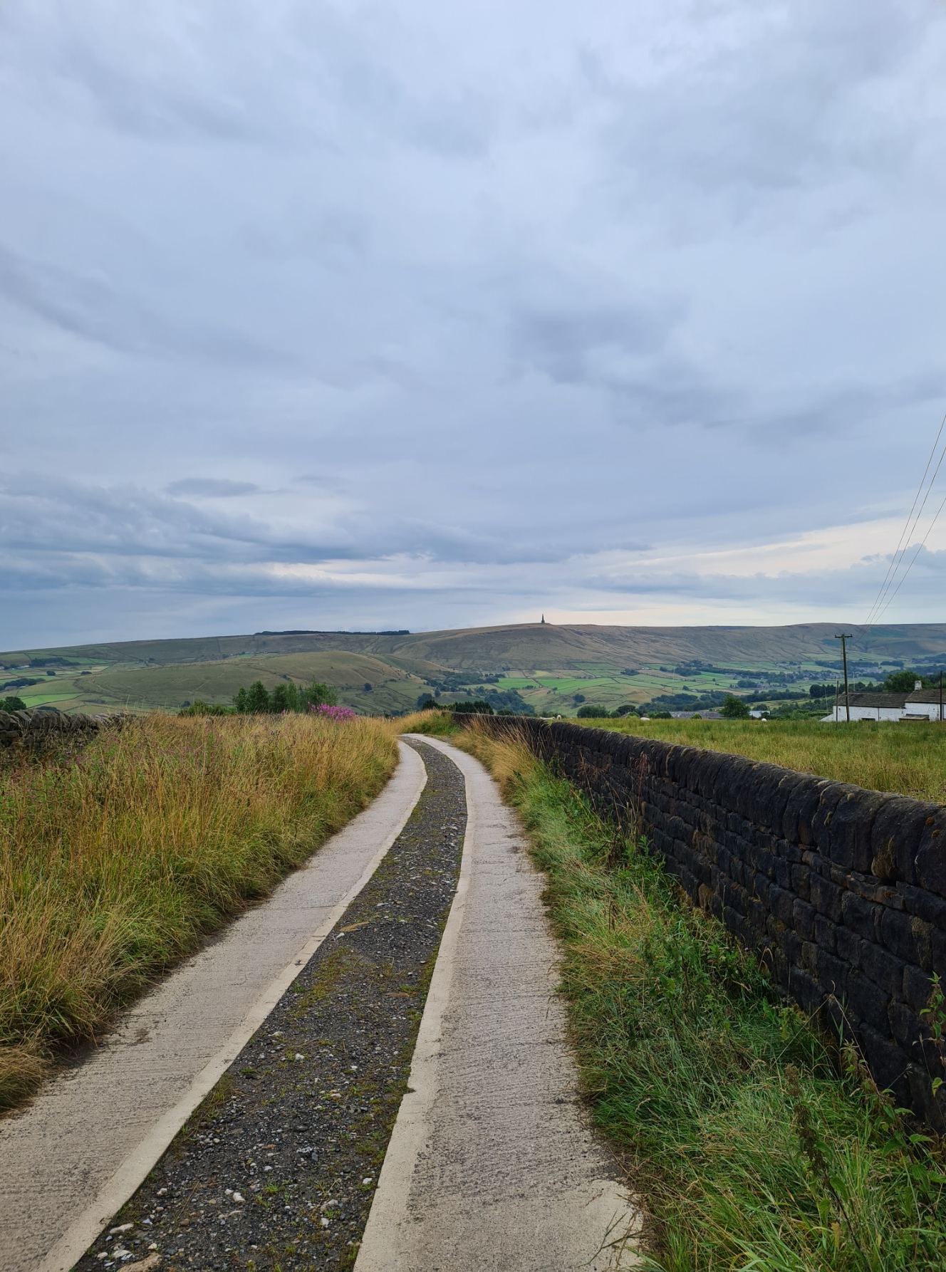 The first couple of hours walking are heading toward Stoodley Pike with a surprising number of ups and downs before the final climb. I did stop for a long chat with one homeowner who came out to check on me when she saw me checking the map. She had ridden much of the Mary Towneley on her horse, a Dartmoor Pony/Gypsy Cob cross, but had now decided she was too old to fall off a horse and had retired both herself and her horse who now spent its time grazing in the field alongside her beloved donkeys. She told me they stayed mostly silent, unless they caught wind of the female donkey two miles up the valley. There was a feeling of progress about the morning and I was anticipating a good final day on the Loop. Correctly as it turned out. Despite being mid-week I was also joined on the trail by more cyclists and horse-riders than I had encountered in the previous days. This part of the Pennine Bridleway also periodically meets the Pennine Way and even if not running concurrent, backpackers can frequently be seen across the moor.
