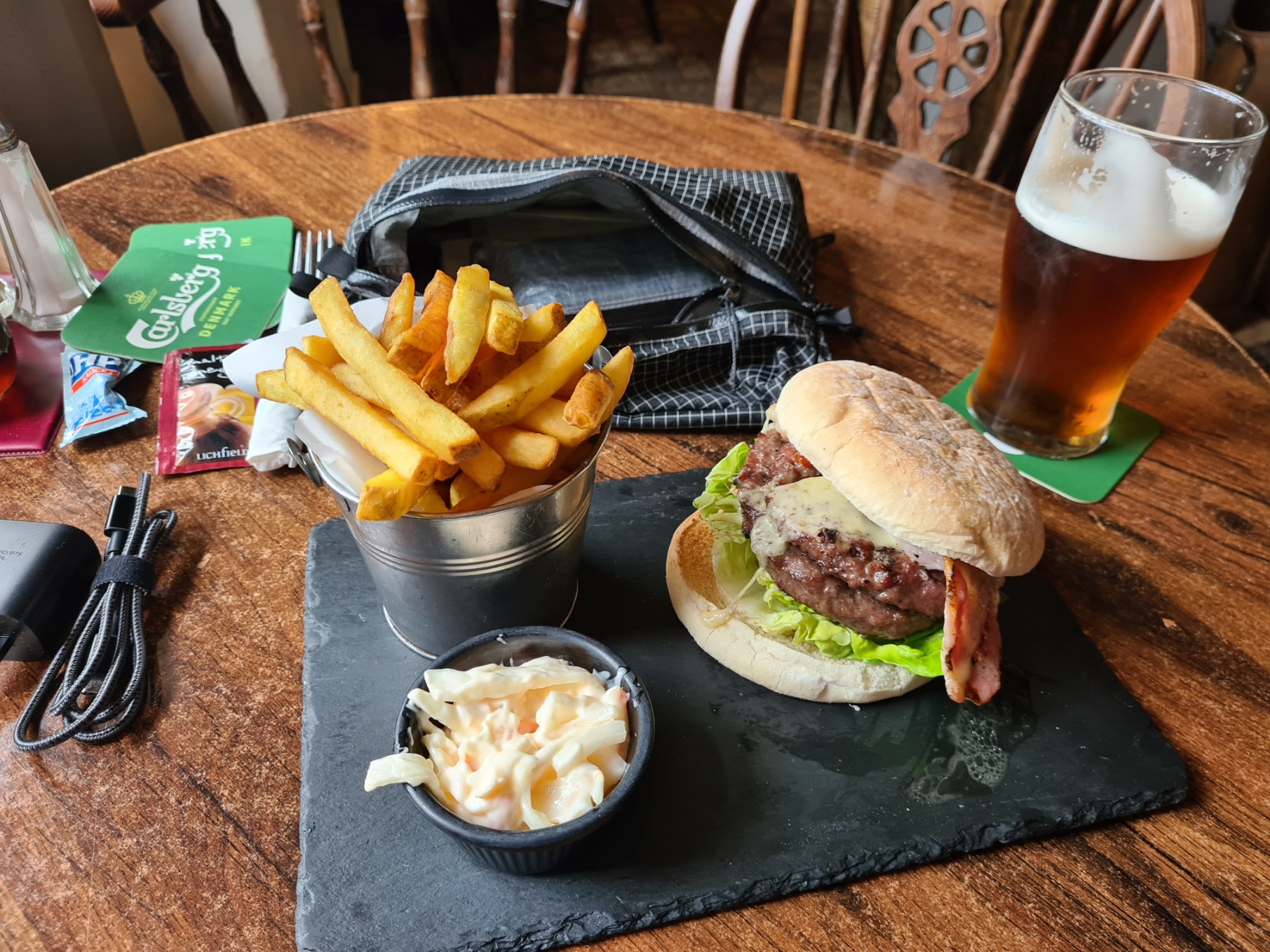 As important as a shower, I also had my mind on a decent pub meal. Much later, having rested, rehydrated with multiple brews and paid a fiver for my overnight stop, I enjoyed a huge ‘starter’ of chicken goujons (more like half an ostrich) followed by a basic bangers and mash. A couple or more pints of Vocation IPA slipped down equally as easily and I slept well with no noise from the nearby road bothering me in the slightest though it had rained heavily for a few hours. It had been a fairly undemanding and enjoyable half days walk.