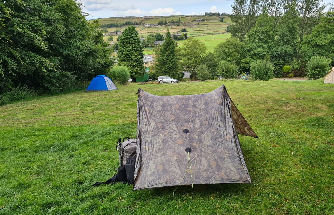 Looking at the map I could see that even if I had a fairly short day today I would still be OK for a decent half day’s walk to complete the Mary Towneley Loop at Summit the next day, theoretically leaving me plenty of time to sort out a transport option from there. I was ready for a campsite, early pitch and a bit of a rest rather than wildcamp for my nights halt after little more than a half day’s walk. I was also ready for a shower. I had previously read of a small field next to the New Delight Inn at Jack’s Bridge and set my sights on that. As it was, I arrived a half hour after they had shut after the lunchtime session and there was no one around and the doors to the Inn were locked. Taking a bit of a chance I went up to the camping field and found the closest I could to a flat spot at the top of the field. It was fairly near the road but further down I would be rolling out of the tent mid-slumber. I found a small shower block and happily sluiced myself clean. It was all very basic amenities but a perfectly adequate backpackers stop. Pennine Way backpackers obviously stop in here too and I chatted to a pair of knowledgeable backpackers, it became a bit of a gear fest as we chatted on all-things US ‘cottage’ company. I had washed out my hiking garb and strung that out on a line to my shelter to dry. The solar panel had gone out to catch the sun and that was, of course, enough to frighten the sun away, bring out the clouds, followed later by rain. Looked like I would be hiking in wet clothes the following day. Not for the first time but at least they wouldn’t smell so rank.