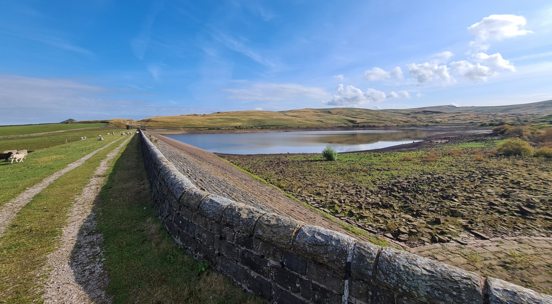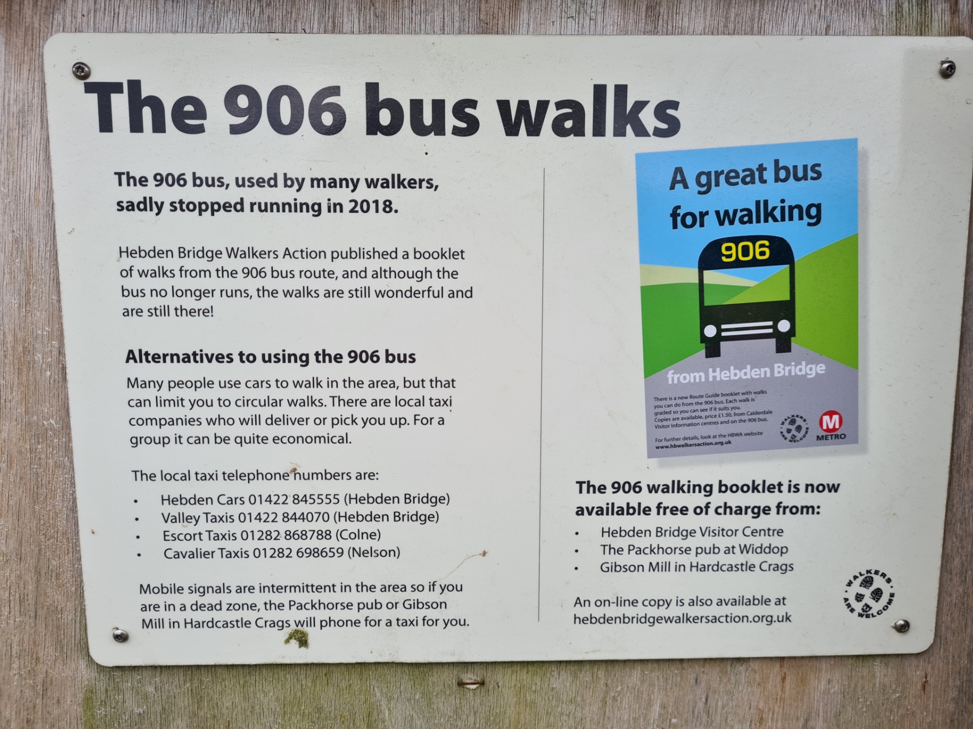 Further on, despite the lack of water, Widdop had purposely been emptied to allow maintenance work installing rabbit proof membranes on the grassy covering below the dam. Surely such works and wasting of water should have been postponed if there is a water shortage? I queried the sense of it with one of the workers there but he was more keen on telling me of the unique sloping screw design for the outlet valves, based on an Egyptian design I was enthusiastically informed. Beyond the dam, as I joined the road I came across a notice informing me that the useful bus that deposited walkers here had been discontinued. More on that problem later.