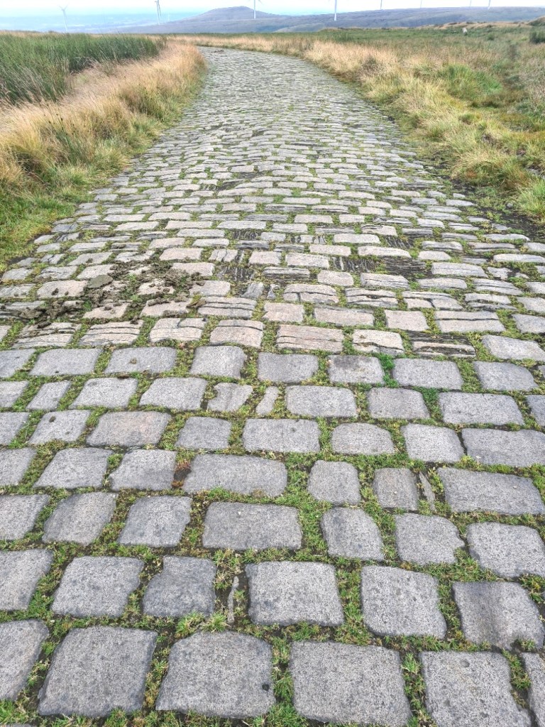 I had rain clouds chasing me all the way up the long climb to Top of Pike. This eventually caught me and passed as I reached Top of Leach on Rooley Moor. It is good underfoot however and never became the slippery mess it would have without the stone causeway; a multitude of setts are underfoot. These were likely laid during the Lancashire Cotton Famine in the 1860s as part of the Poor Relief effort. Severe unemployment resulted from the lack of raw cotton materials bought about by the American Civil War and it is interesting that despite the hardship being created, many Rochdale cotton mill workers supported the Union cause. The reason for this support was postulated by none other than Karl Marx.