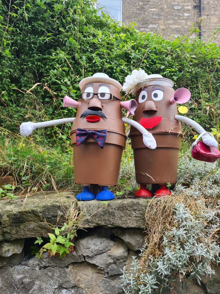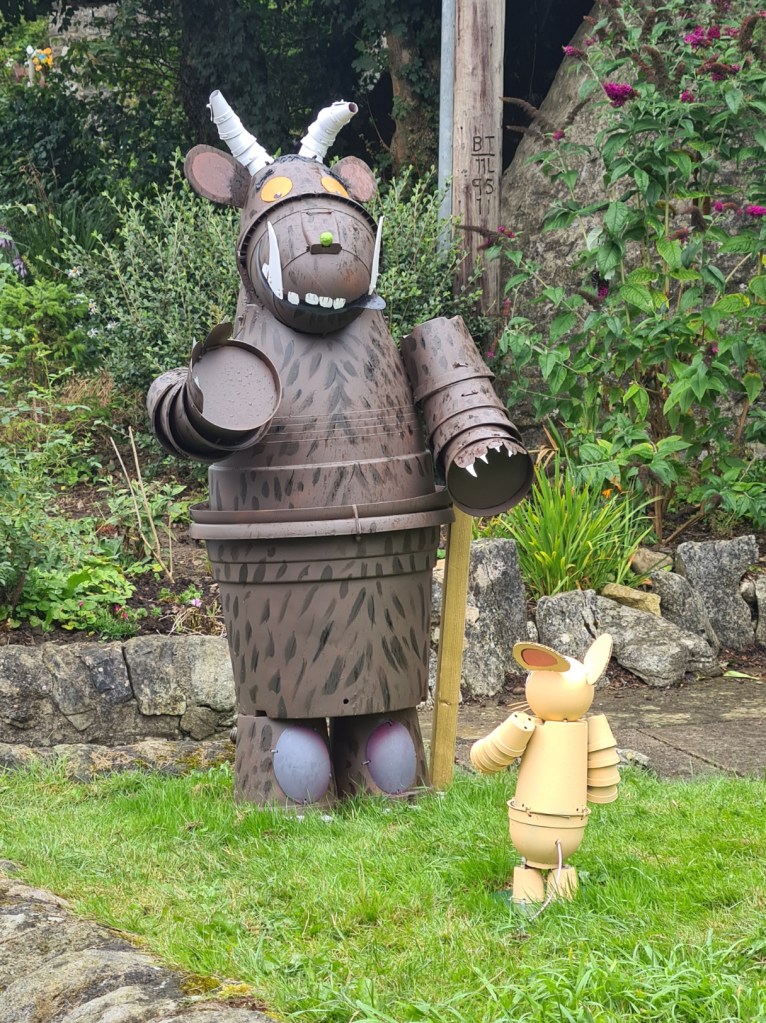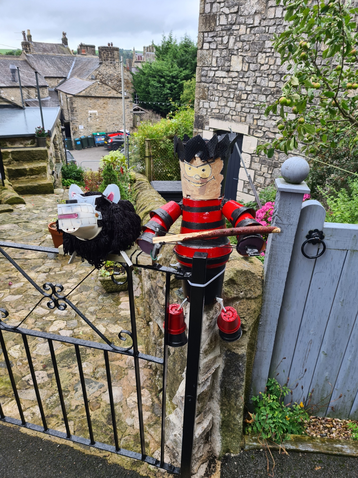 I finally reached the road descent down into Settle. It is a long long walk down to the town but enjoyable nonetheless. I passed a waymarker post where the trail divided. I originally had no intention of starting the Settle Loop today but I simply couldn’t find anywhere suited to a camp. If I turned right at this point it was obvious that once I had completed the Loop tomorrow I was going to have to complete a long climb out of Settle to this place tomorrow, to then turn round and walk back the same way back into town. It looked like I was going to have to walk down into and continue on, beyond and out of Settle today. I wouldn’t get to experience much of the joys of Settle, that would have to wait until tomorrow. But I did have unexpected entertainment as I walked through the upper streets. Settle has a flowerpot festival each summer and I passed dozens of designs, some quite inventive.