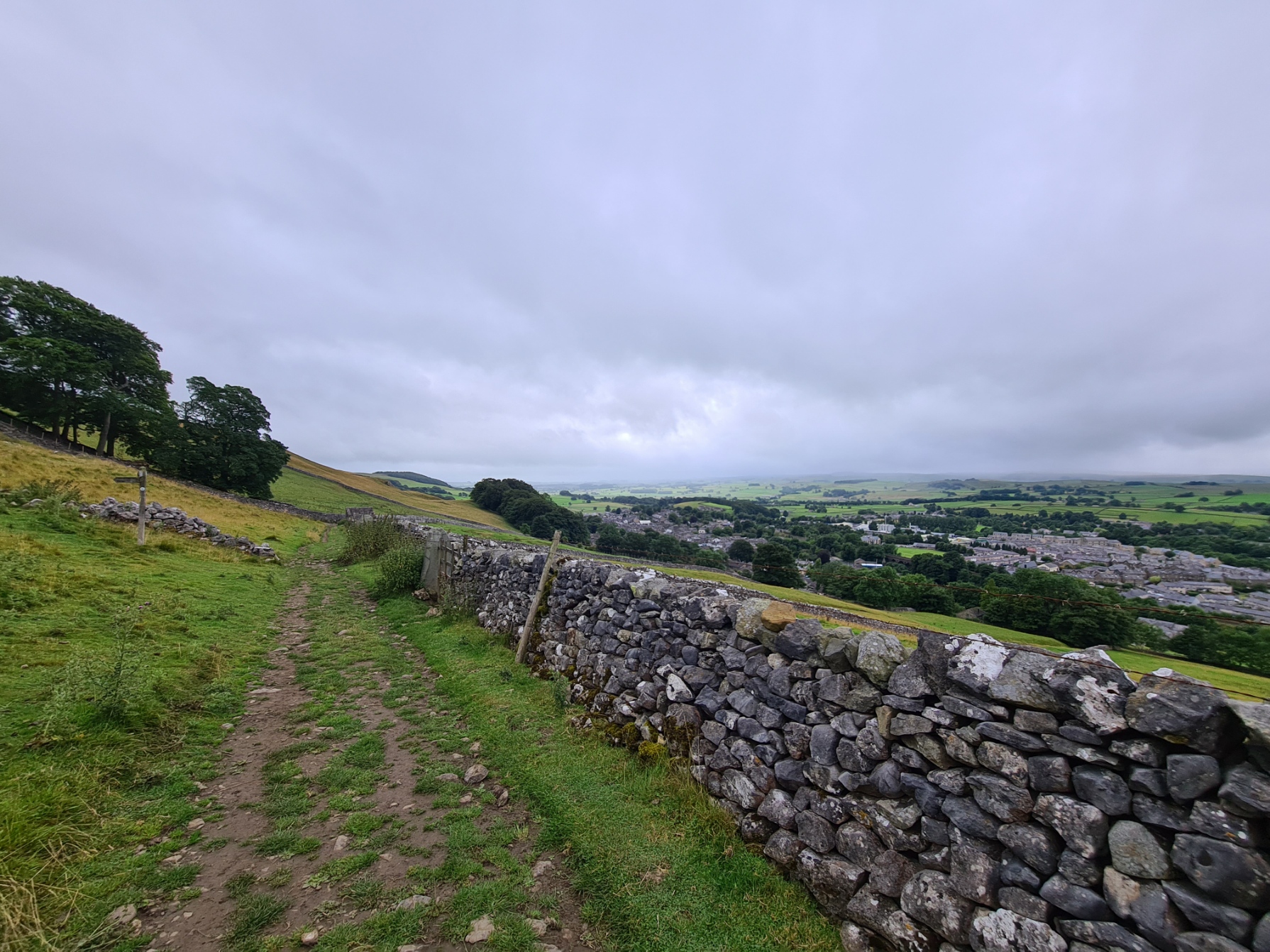 It is a steep climb out of Settle, at least initially, followed by pleasant walking along the contours of rolling hills, but I could see I was ascending into low cloud and the weather forecast was poor for the night. I had just completed an 18.85 mile walk to Settle with 2061 feet of ascent. I didn’t know it then but I had another three miles and a thousand feet of climb before I would find my pitch for the night, but that is for the next blog on the next stage on my Pennine Bridleway- The Settle Loop.