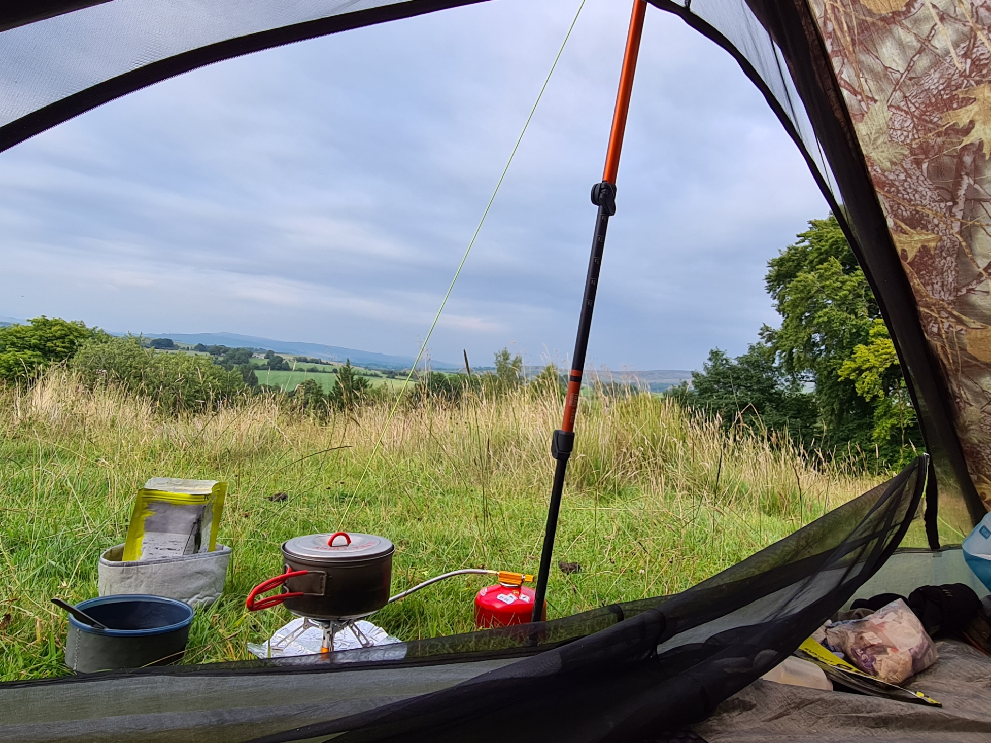 Unfortunately Gail didn’t look too chuffed with the notion but my new found friends won her round with reassurances. I drained my mug of tea, handshakes all round and fifteen minutes later the Duplex was up. It was not even five in the afternoon and for the next few hours dog walkers looked surprised to find me camping with impunity in ‘their’ field, just a few metres from the Pennine Bridleway. This was no arrive late, stay inconspicuous, leave early wildcamp site and I took advantage of this unexpected kindness of strangers with plenty of time to rest, a half-way decent tent wash, multiple brews, a hot meal with a modest view, video chat with Mission Control and a long and quiet nights sleep. Despite there not being too much to see during my ninth day on the Pennine Bridleway it had been fairly enjoyable nonetheless and I felt good with no aches or body issues.