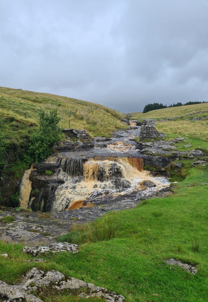 From the road beside the pub it is just a mile and a quarter climb up to the High Way. A curlew burbled at me, circling ever nearer and I suspected I was too close for comfort and he/she was loudly letting me know. I walked a couple of hundred metres further and an Oystercatcher took over doing the same, loudly piping at me to clear off. Beginning my steady climb I paused just past Yore House Farm to view the stream tumbling down rocks, a pretty scene, I raised my phone to take a photo and… curses… missed it. A young otter had briefly appeared, making its way upstream beneath the rock overhang on the far bank. I totally failed to take the photo. The first otter I have seen in eight years.