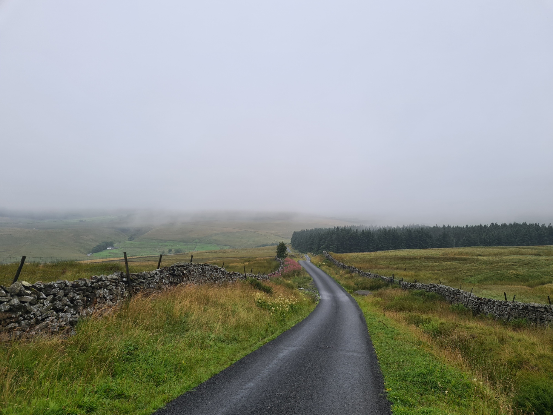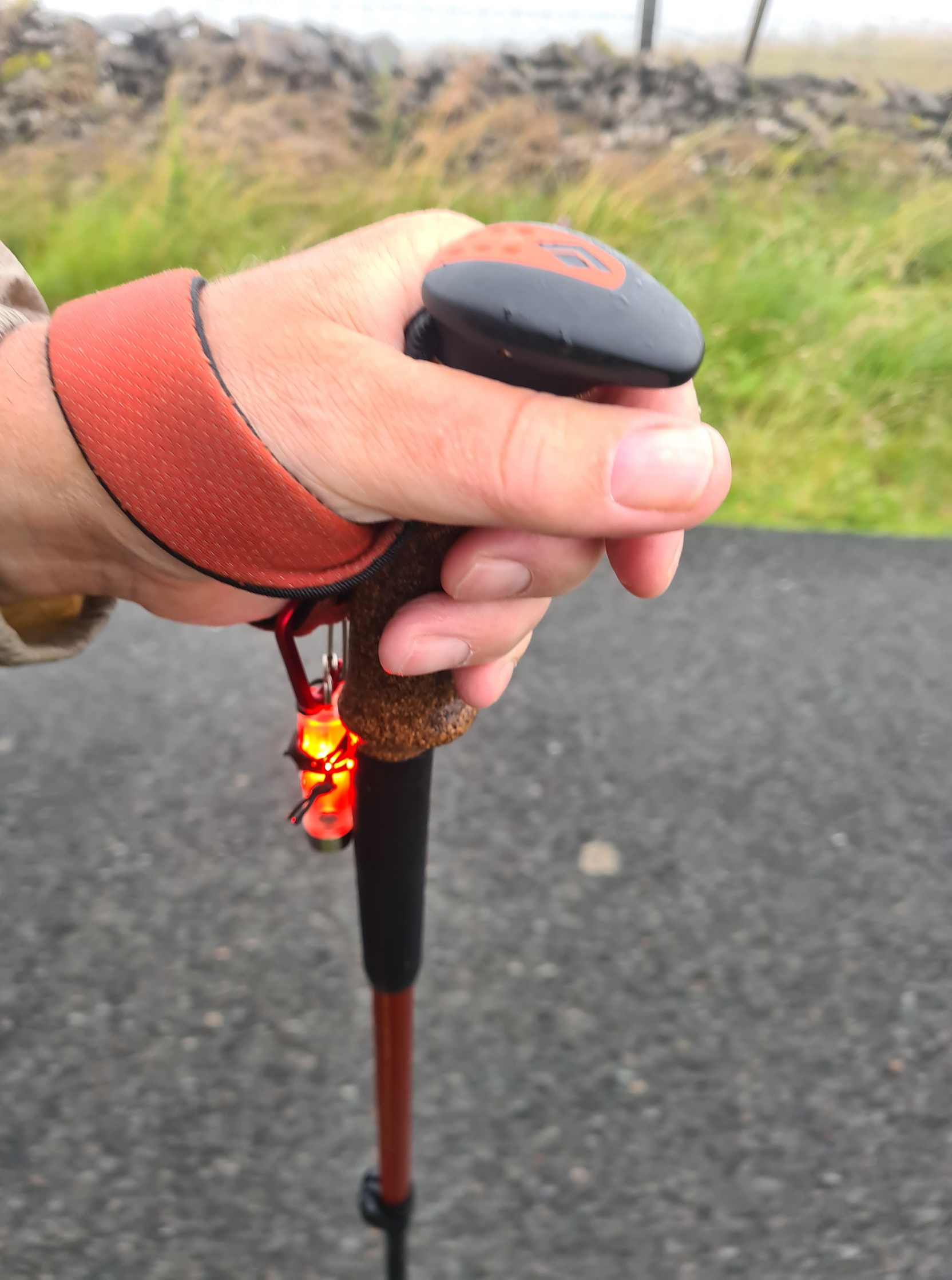 It cleared up a little but the road walking was a tad dodgy in the mist and I put my little RovyVon ‘flashlight’ on flashing red mode and hung that from my left hiking pole loop so that it could be seen both from the front and rear. You might think that this would be pretty ineffectual but I have done similar in the mist in the past and twice subsequently talked with drivers hours later that remembered passing me and they mentioned that it was the red flashing light that they saw first. I try to not let this build any overconfidence and still stepped smartly off the tarmac if I heard a vehicle.