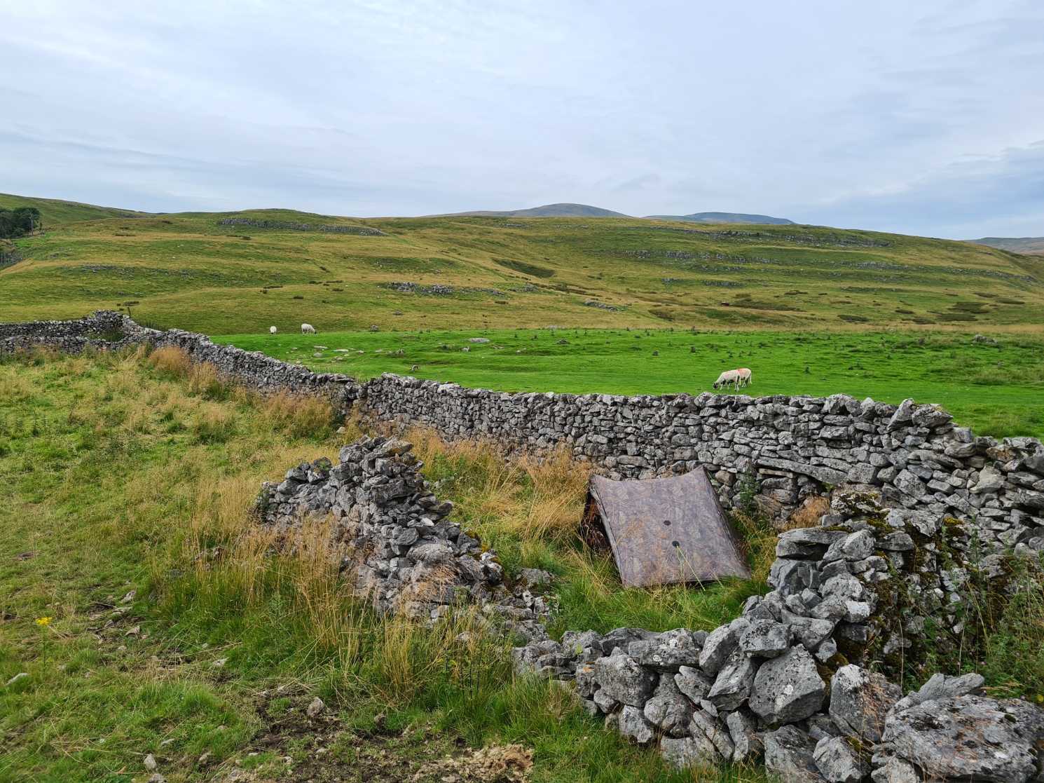 Wildcamp on day twelve. The cropped grass on the other side of the wall might appear preferable but not only did I want to stay out of sight, but conditions were promised to get rough overnight and I wanted the extra shelter the walls around me would provide