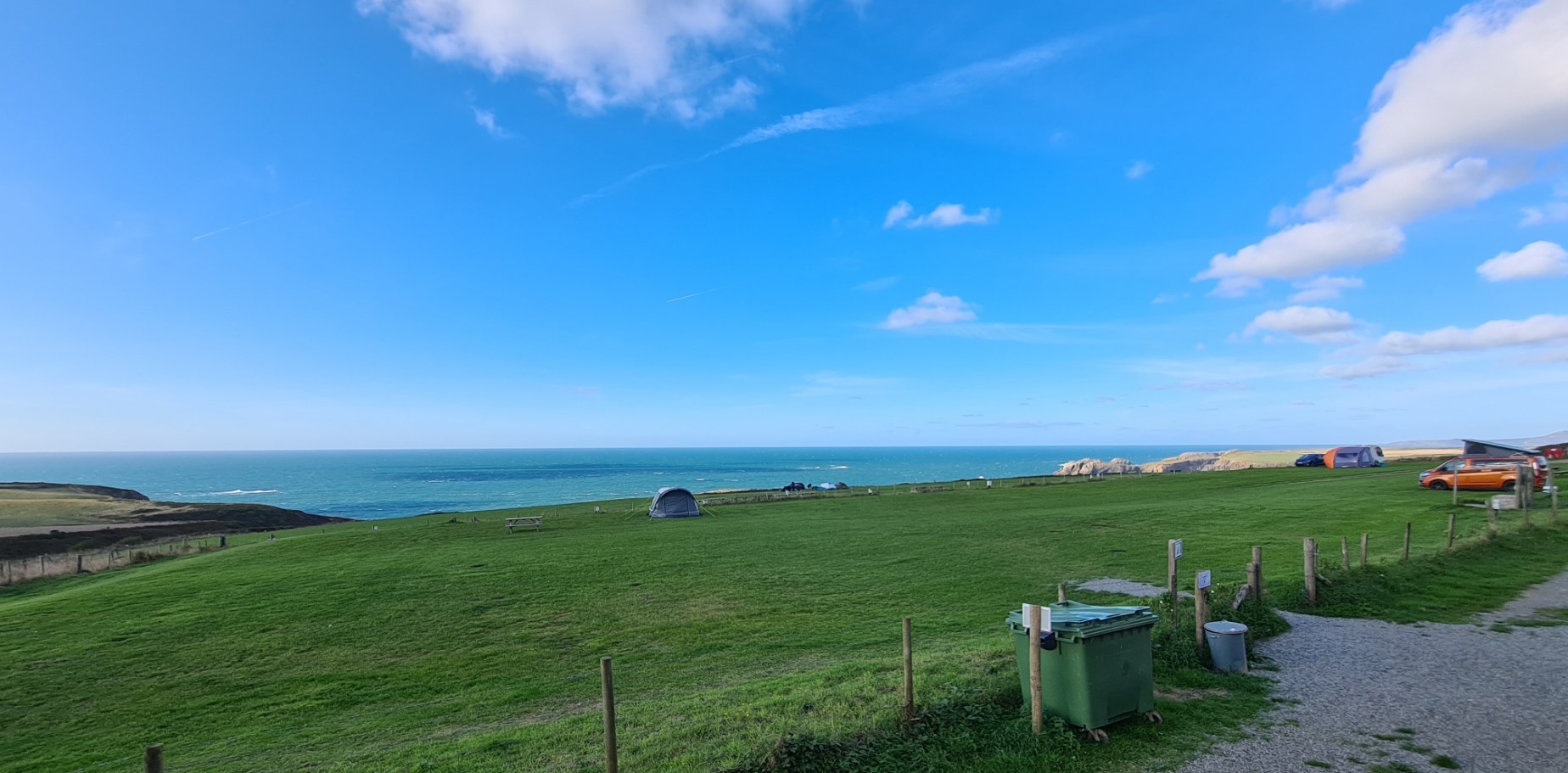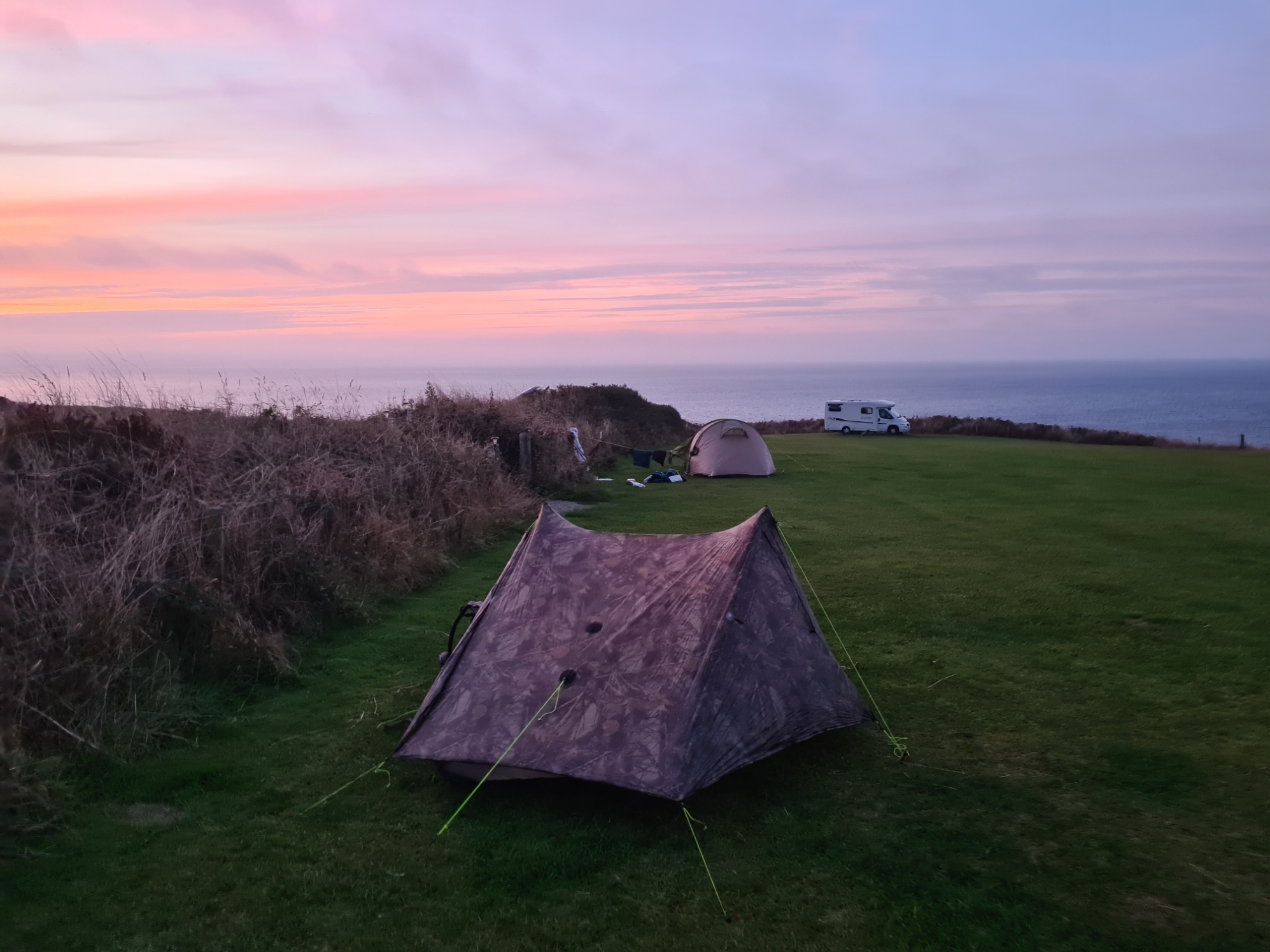 After a cracking days walking I reached the huge National Trust site Celtic Camping. There is less choice of campsites on this stretch of coastline and Celtic Camping has a bit of a reputation as a decent stop for coastal path backpackers. There is also a large bunkhouse here which is frequently packed out with youngsters undertaking some form of geology or ecology learning. As many as 200-300 people can be accommodated indoors. A fairly large group were arriving later that night, but the rest of the site was very quiet with few campers.