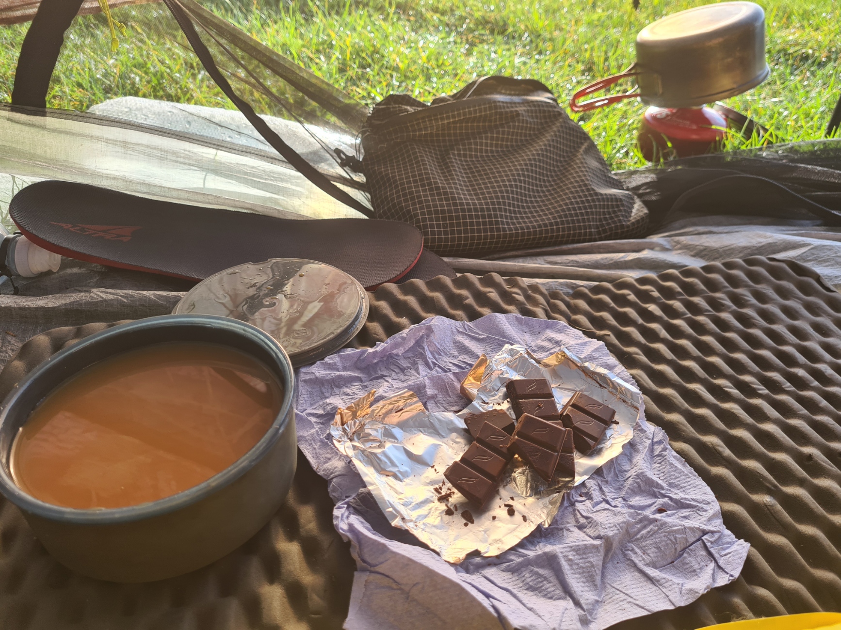 I got the impression that there are a few oddballs using this site but it was very quiet and made a suitable last night for contemplative thought on the trail behind me. It was only the occasional munching from grazing sheep that would occasionally disturb me.