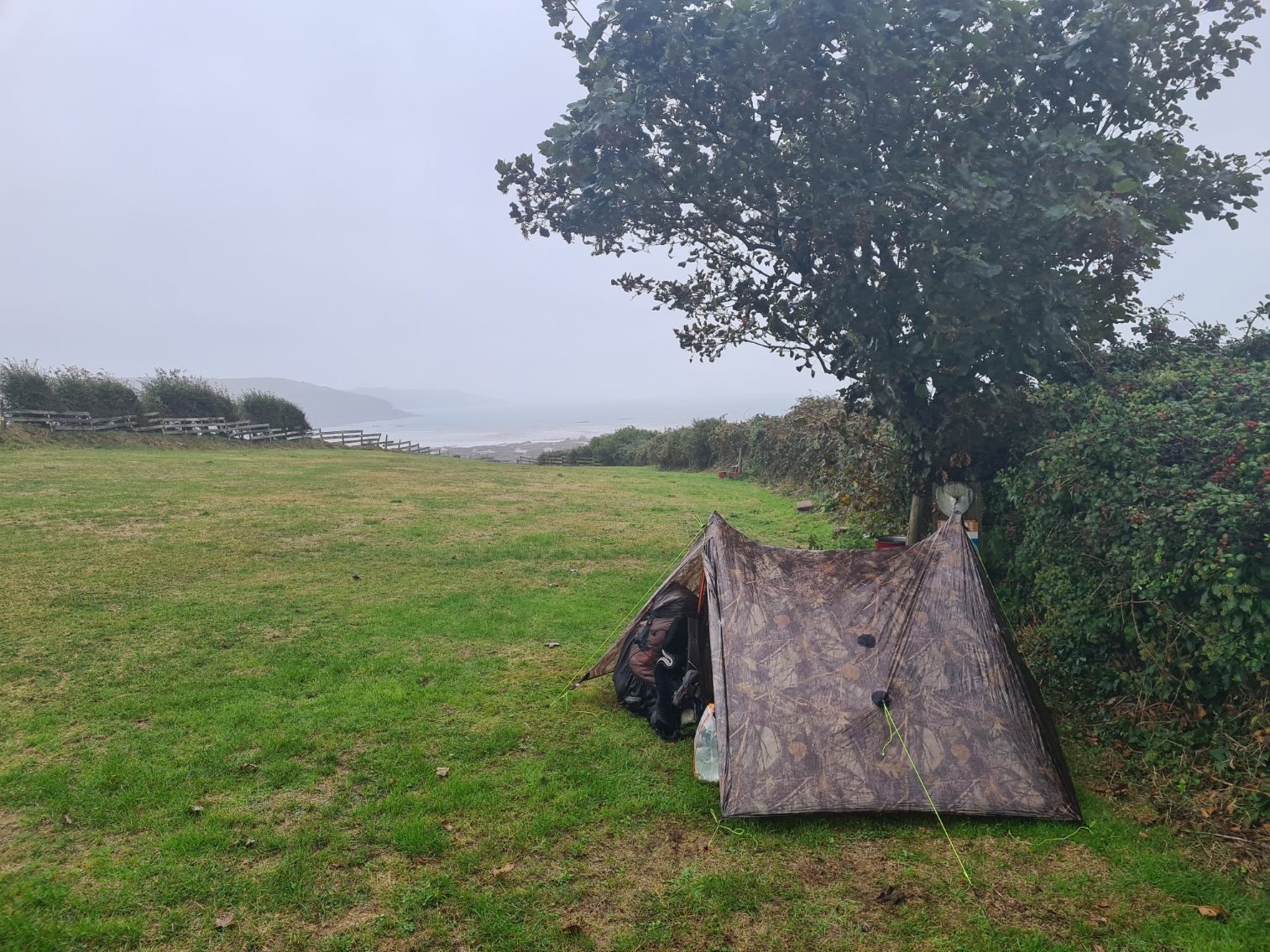 Protection from a night of heavy rain and wind at the National Trust Celtic Camping site